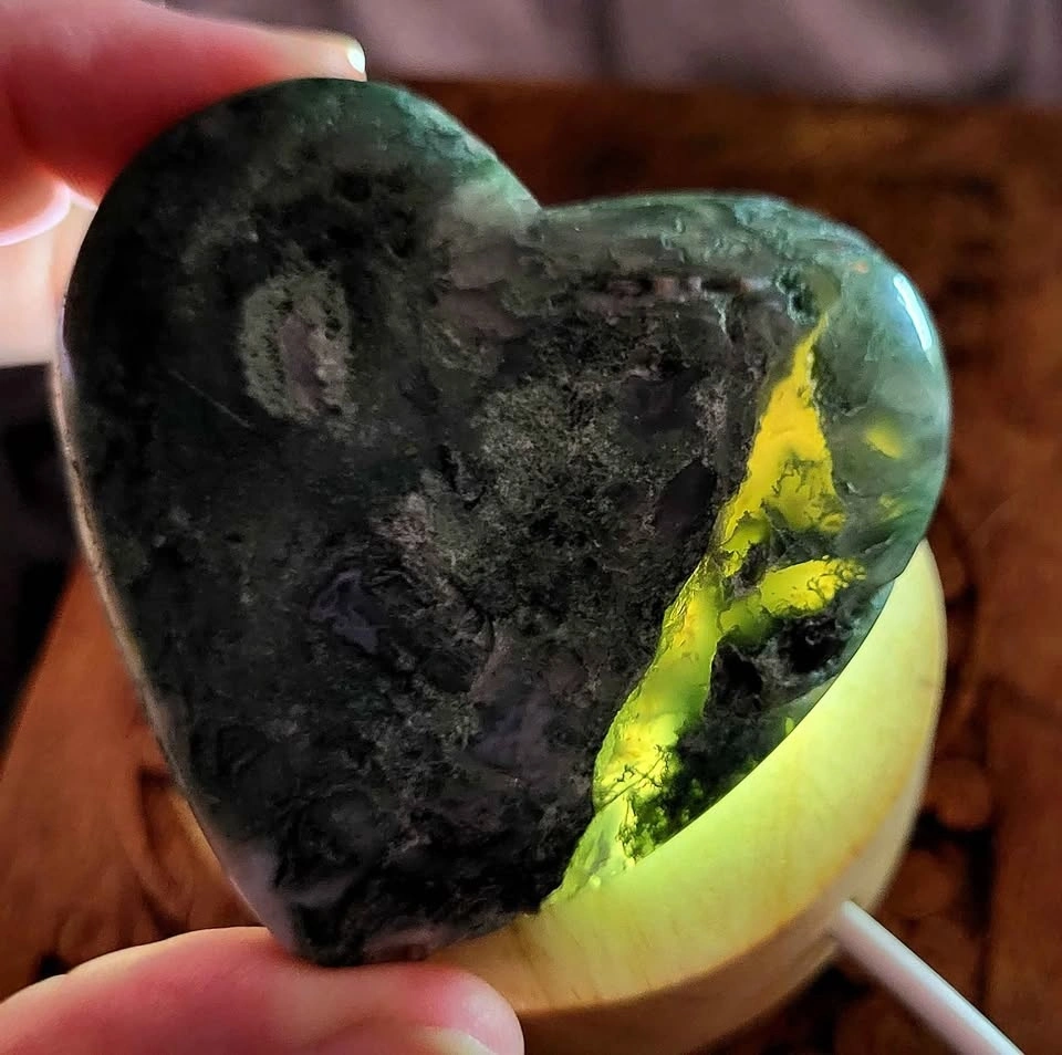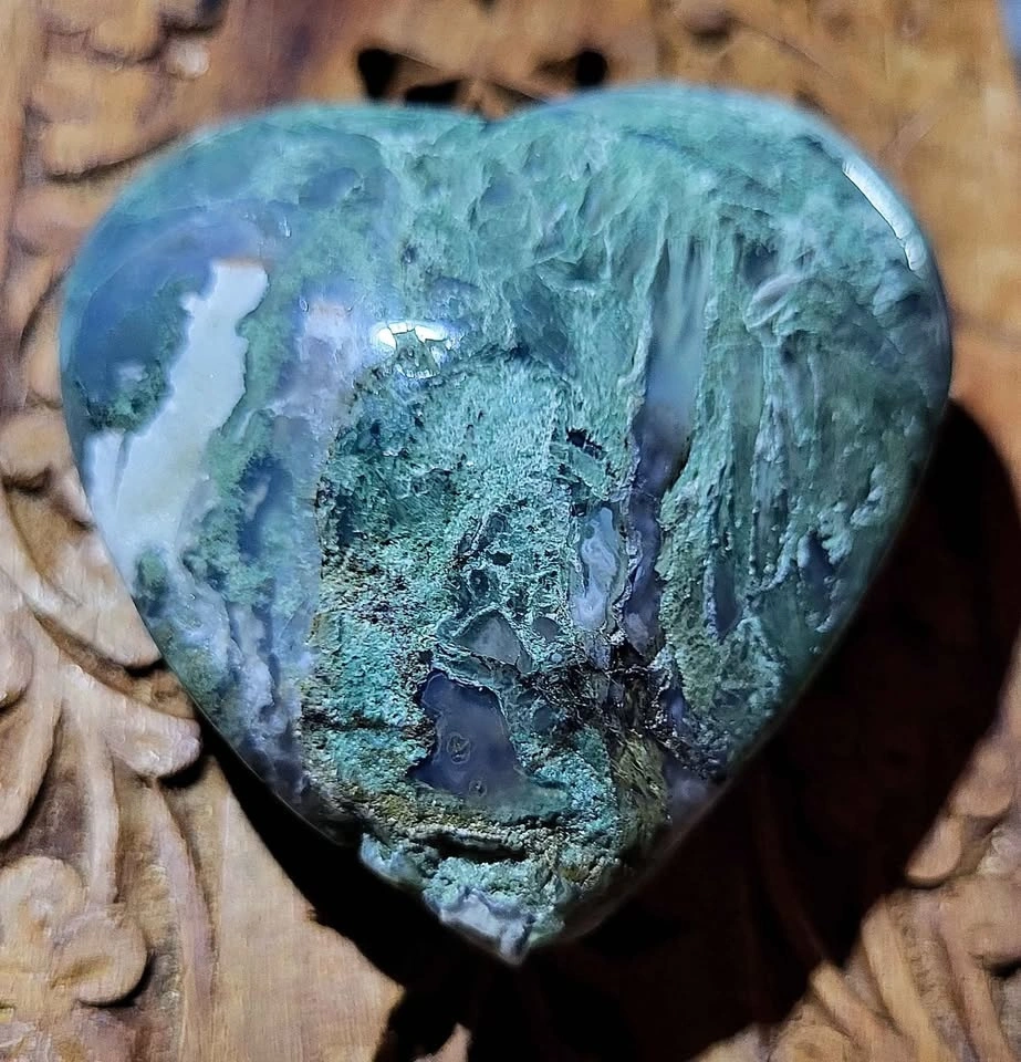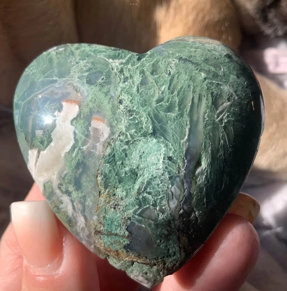 Beautiful and translucent large Moss agate heart. A gorgeous collection piece.