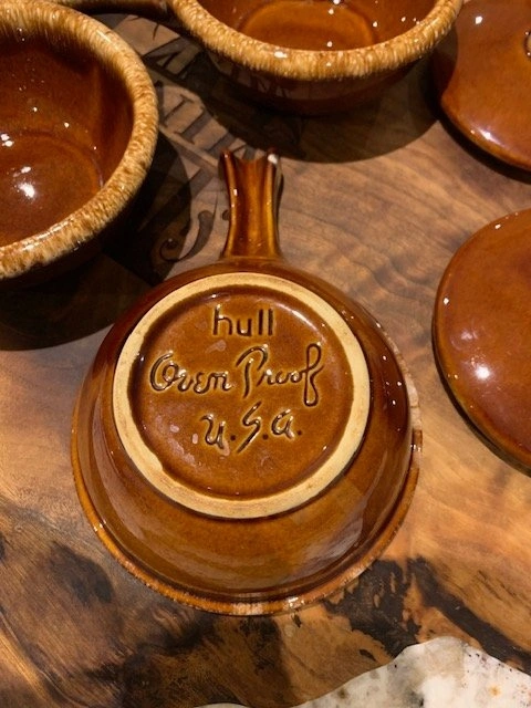 Vintage Hull Pottery Covered Soup Bowls / Crocks