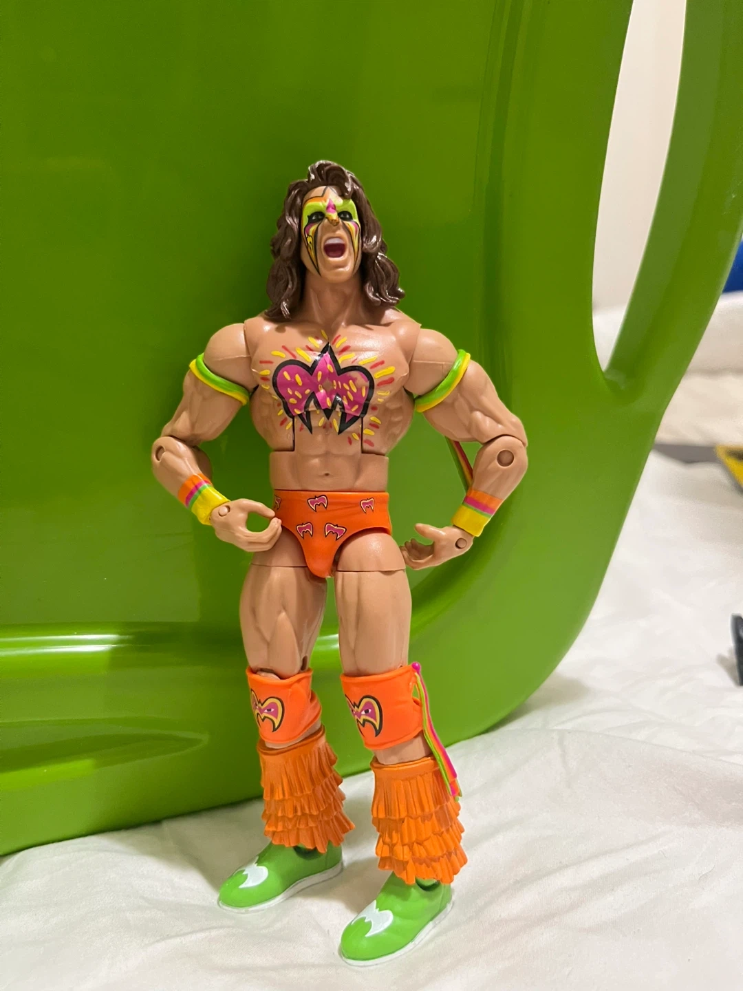 Selling a WWE Ultimate Warrior action figure. It's in great shape and ready for a new home with a wrestling fan! The figure has vibrant colours and detailed design, perfect for collectors or kids who love to play.