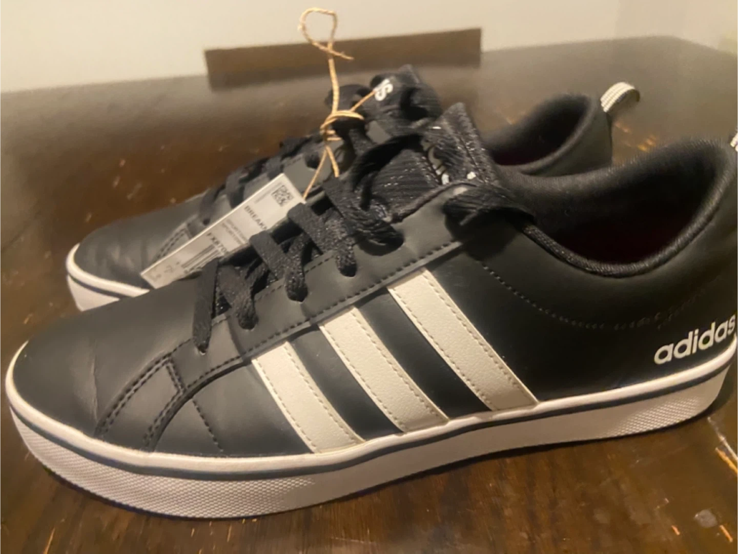 Adidas Breaknet shoes in black with white stripes! These are in great condition and come with the original box. The soles are red with the Adidas logo. A classic look for everyday wear! Compare to price in store good deal.