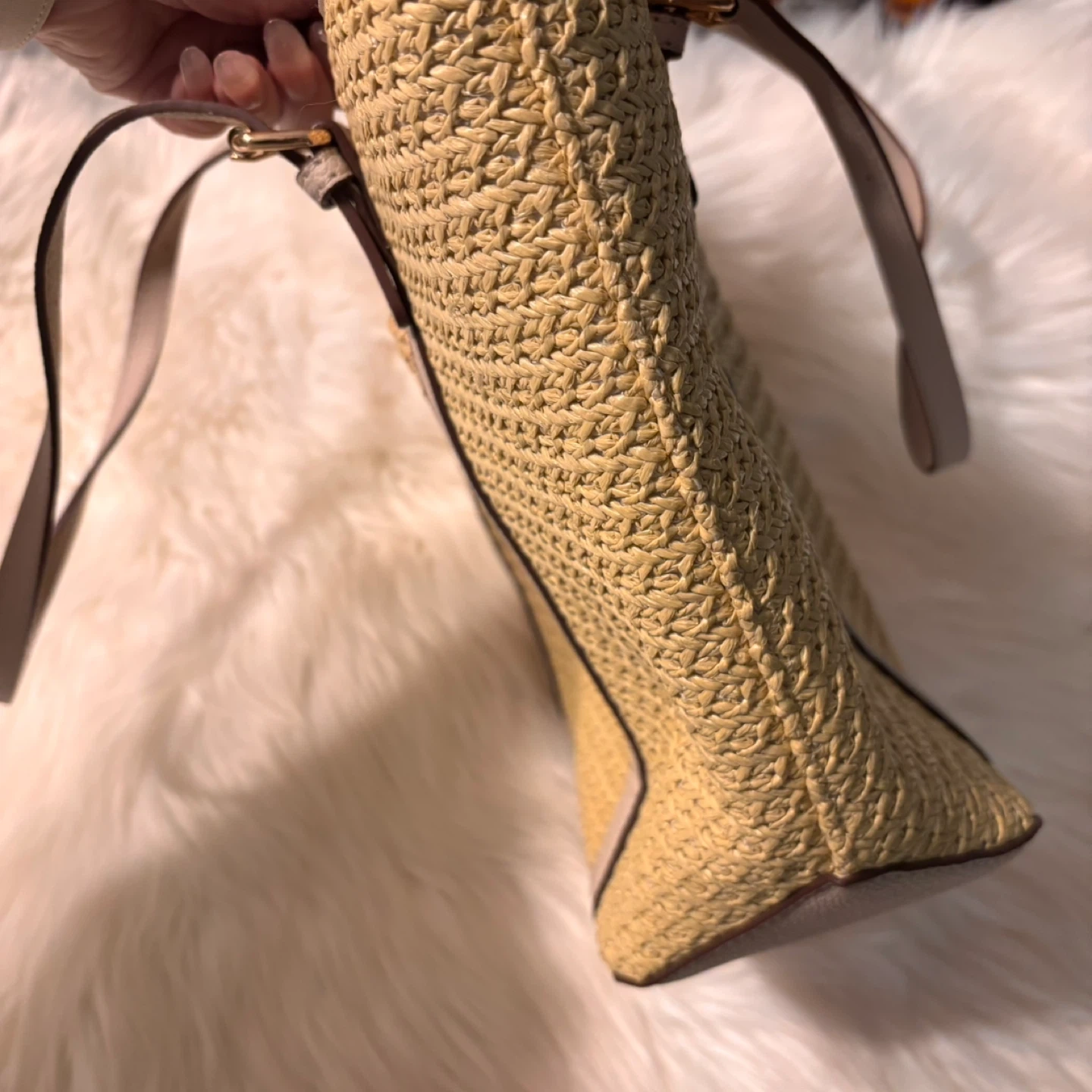 This Anne Klein tote bag is in great condition and ready for a new owner! It features a stylish straw design with light pink accents and a spacious interior. Perfect for everyday use or a day at the beach!