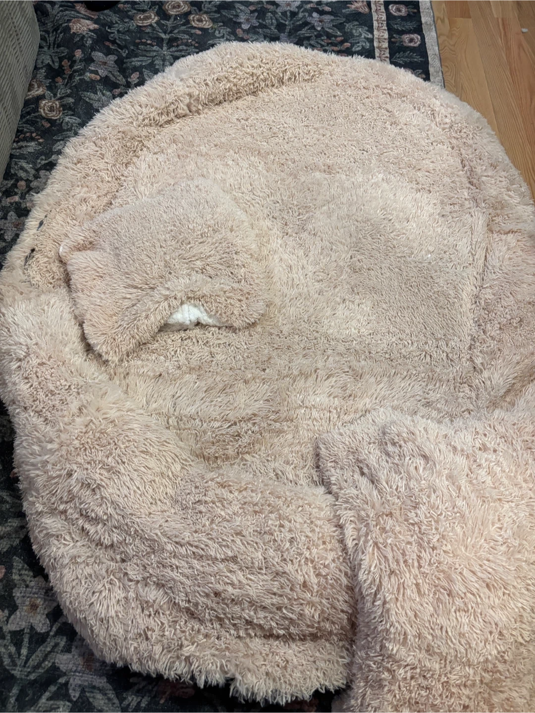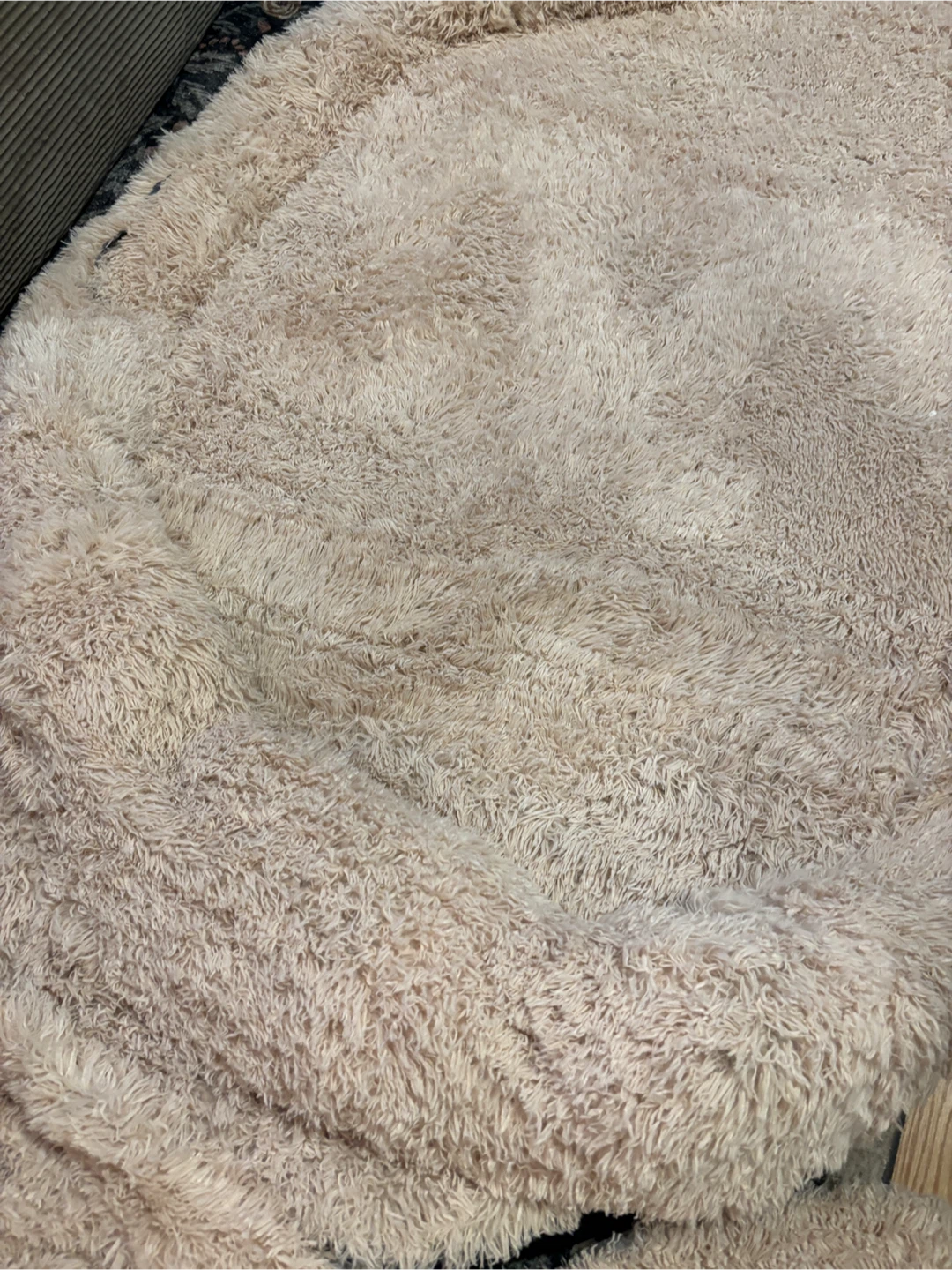 Selling a comfy, human dog bed in a neutral beige colour! It's ready for a furry friend to enjoy. Perfect for cats or small dogs looking for a cozy place to nap and also humans.