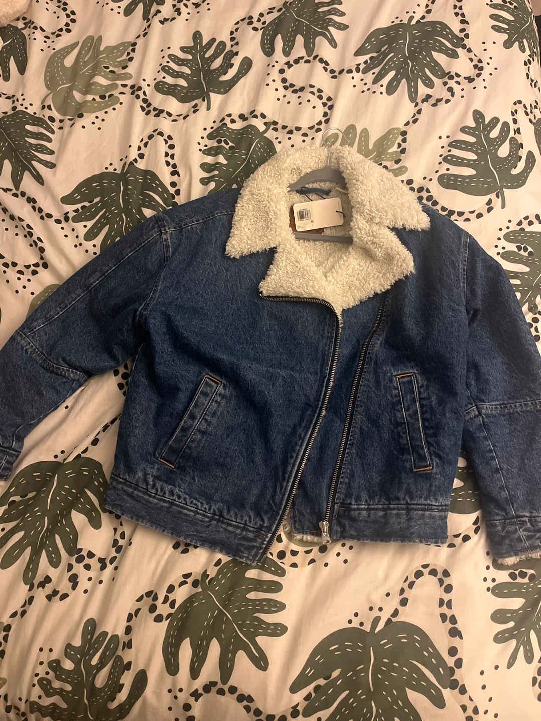 Levi's denim sherpa jacket in size small. This jacket features a cozy sherpa lining and a classic denim look. Perfect for adding a touch of style and warmth to your outfit! New with tags, never worn.