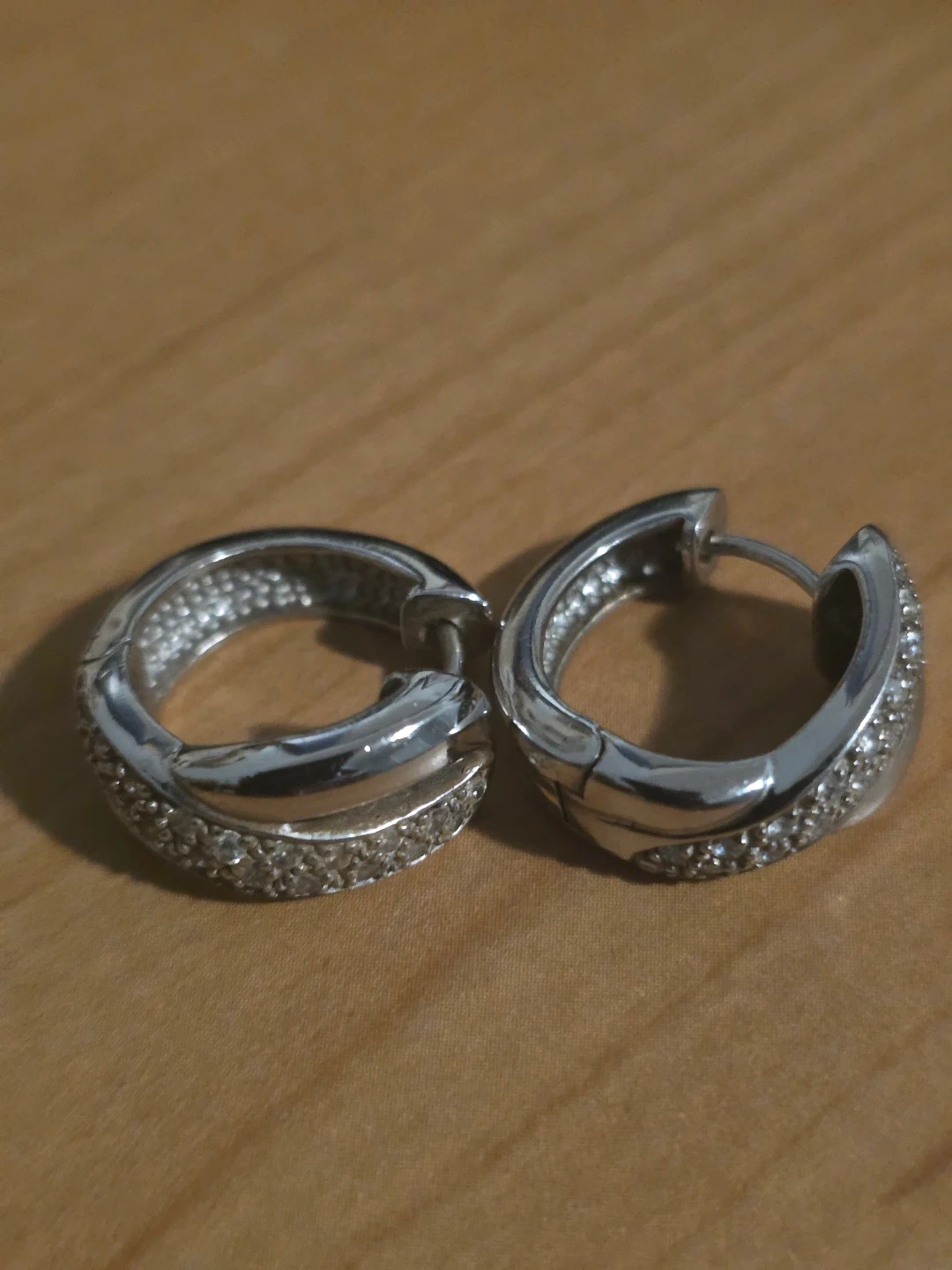 Silver Hoop Earrings with Rhinestones Stamped 925
