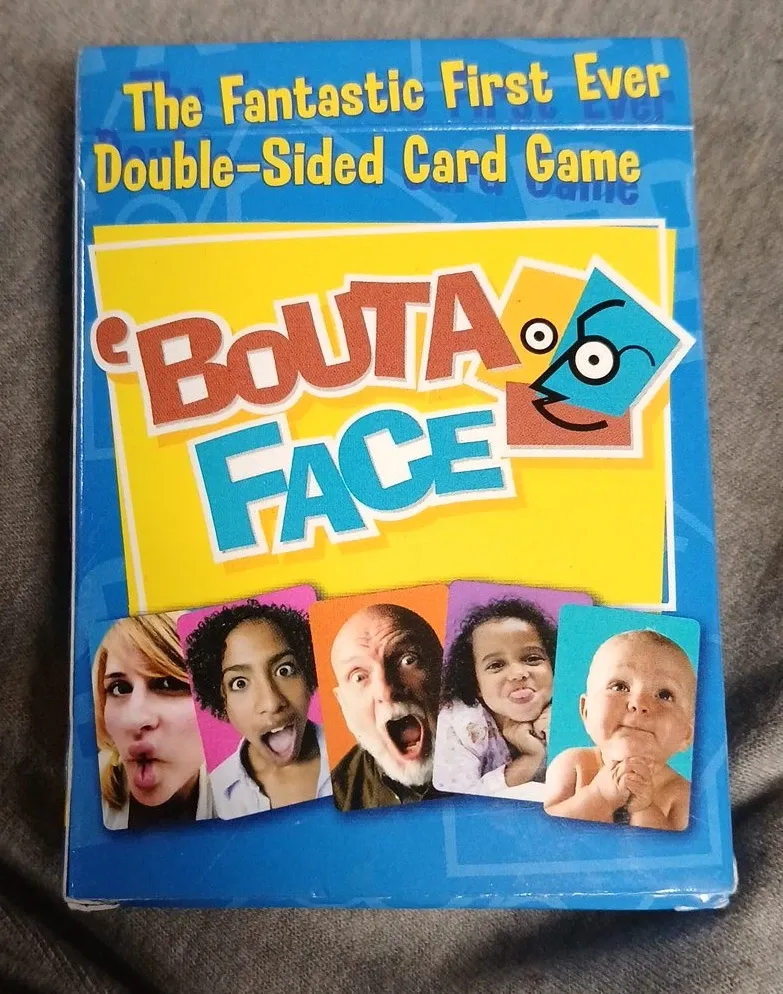 Selling a Bouta Face card game! It's a fantastic first-ever double-sided card game, perfect for memory, matching, and more! Great for 2 to 4 players, ages 8 to adult. This game could seriously improve your memory