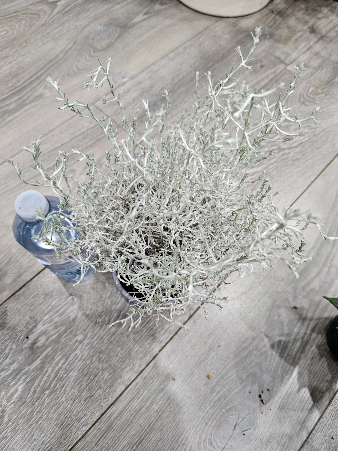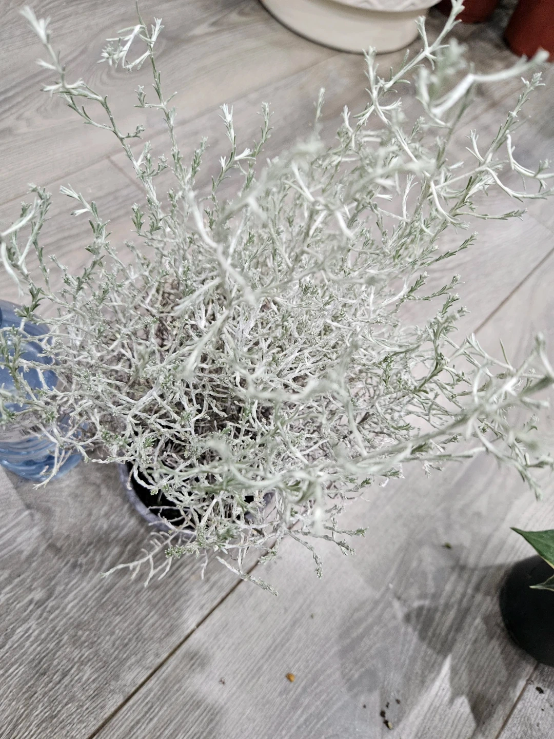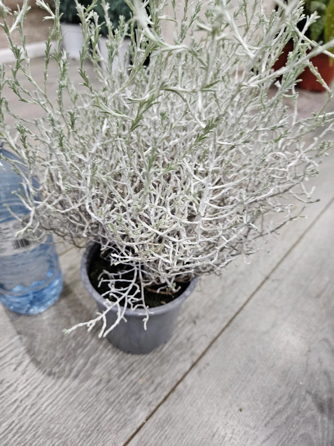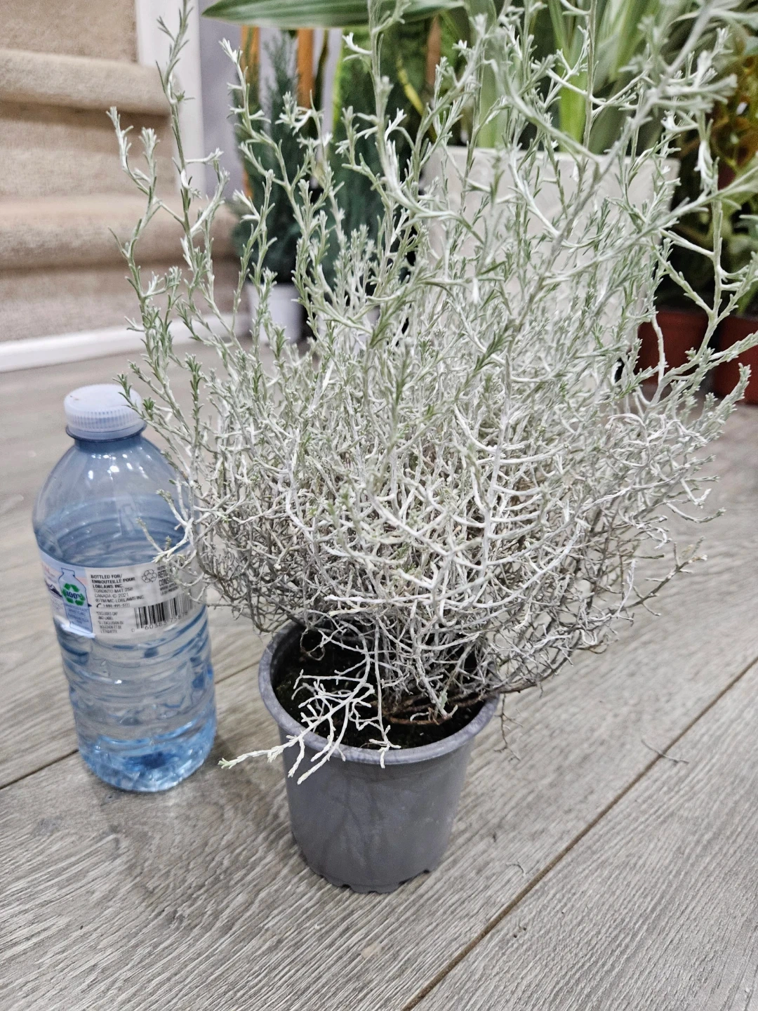 Selling a lovely silver bush plant in a grey pot. It's a beautiful addition to any home or garden and adds a touch of elegance with its silvery foliage