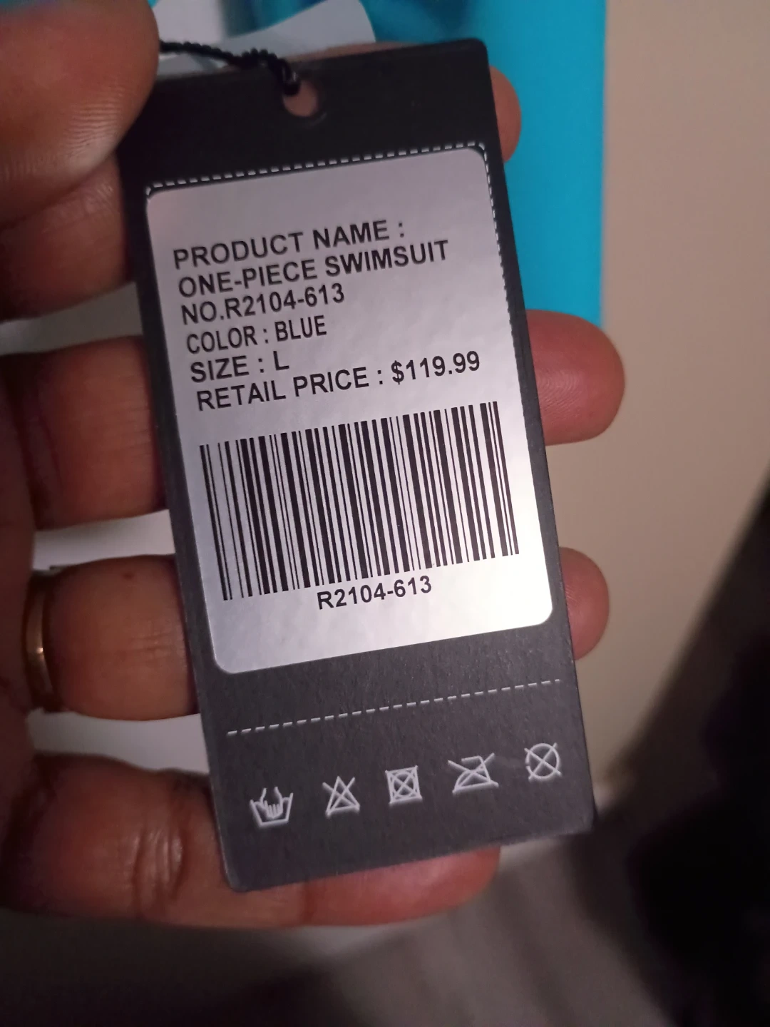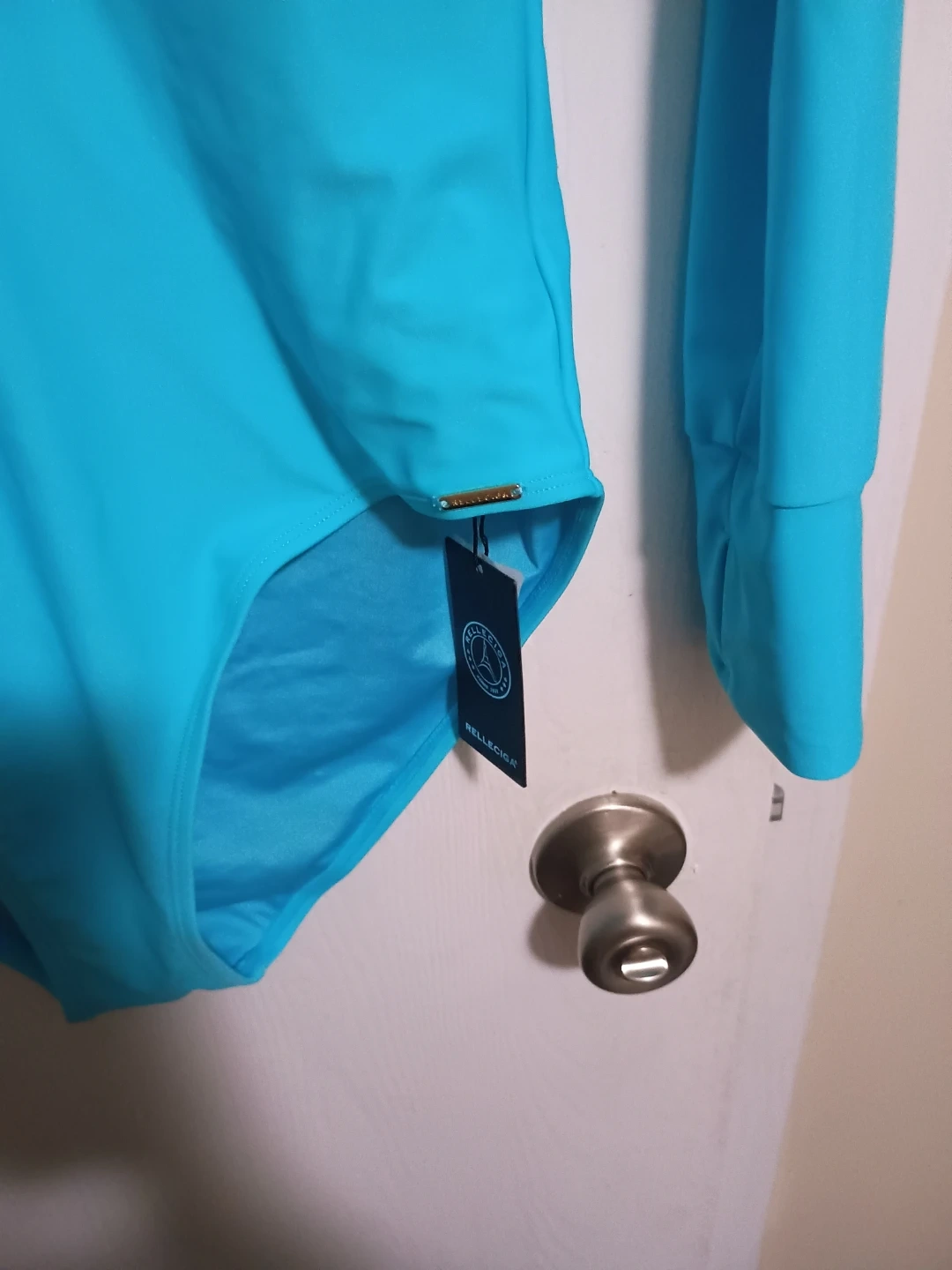 This is a Relleciga one-piece swimsuit in a beautiful blue colour. It's a size L and still has the tags on it, so it's brand new! Originally bought for $119.99.