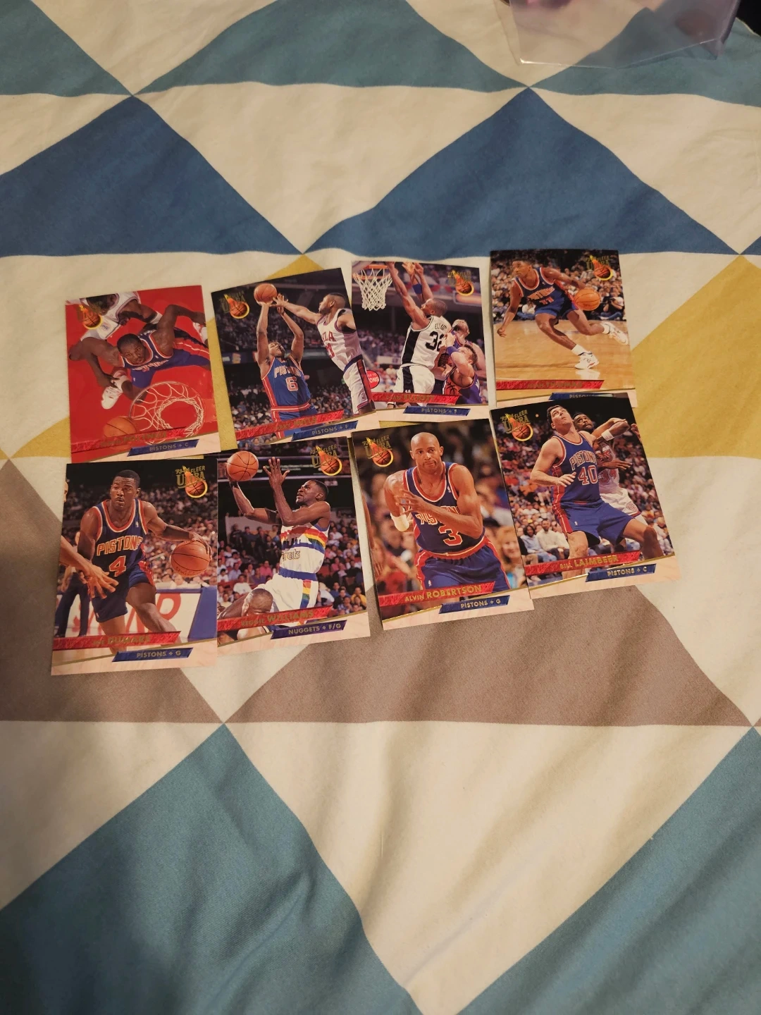 Selling a collection of vintage Detroit Pistons basketball cards. They feature various players from the era. Great for any basketball fan or collector! Let me know if you need any details of this item!