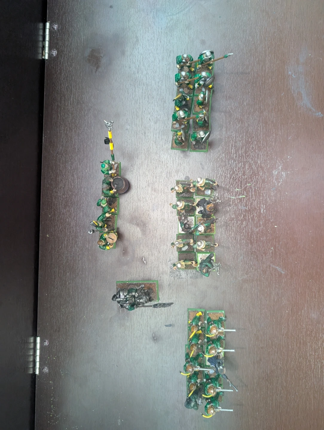 This army set includes an Empire General Knight of the realm, on his trusty steed. A pipe and drum band with company signaleers. 10 Riflemen, 10 Bowmen and 10 Spearmen.