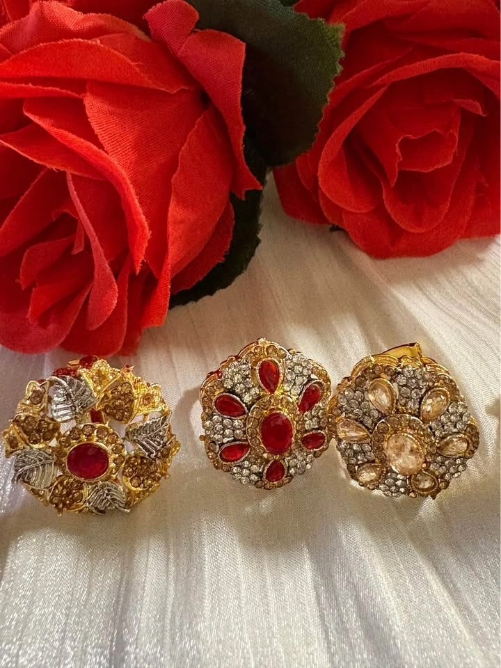 Beautiful adjustable south Asian rings made of adjustable metal and artificial gem stones.
