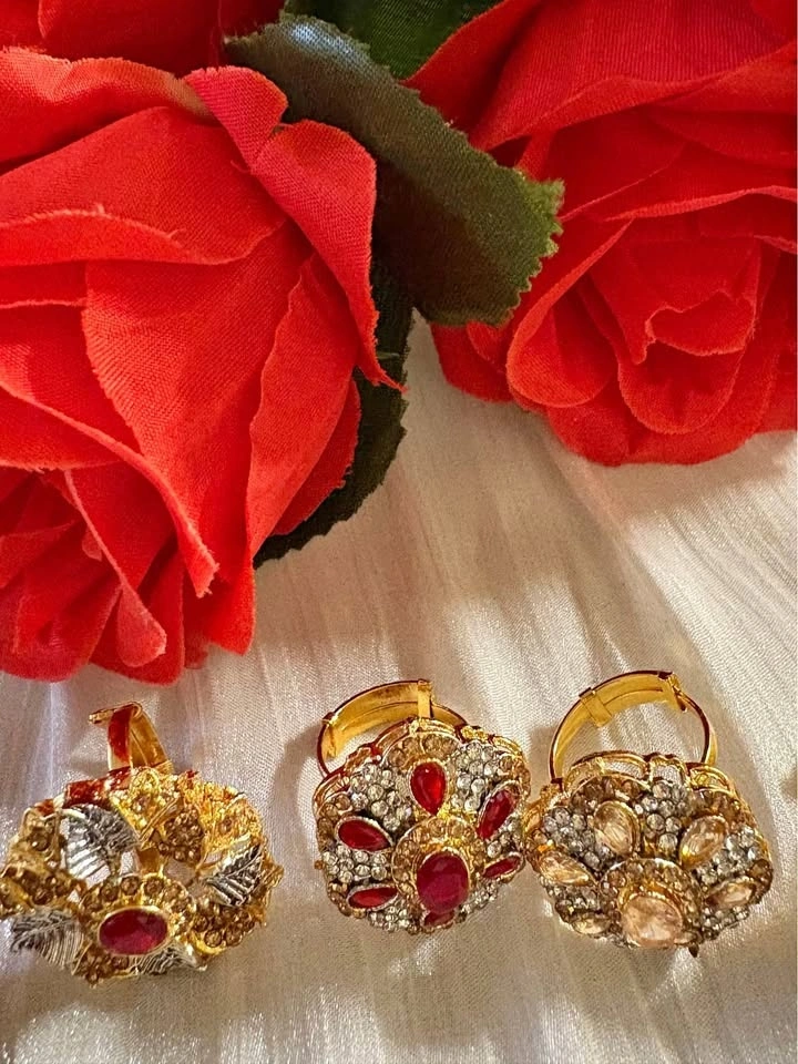 Beautiful adjustable south Asian rings made of adjustable metal and artificial gem stones.