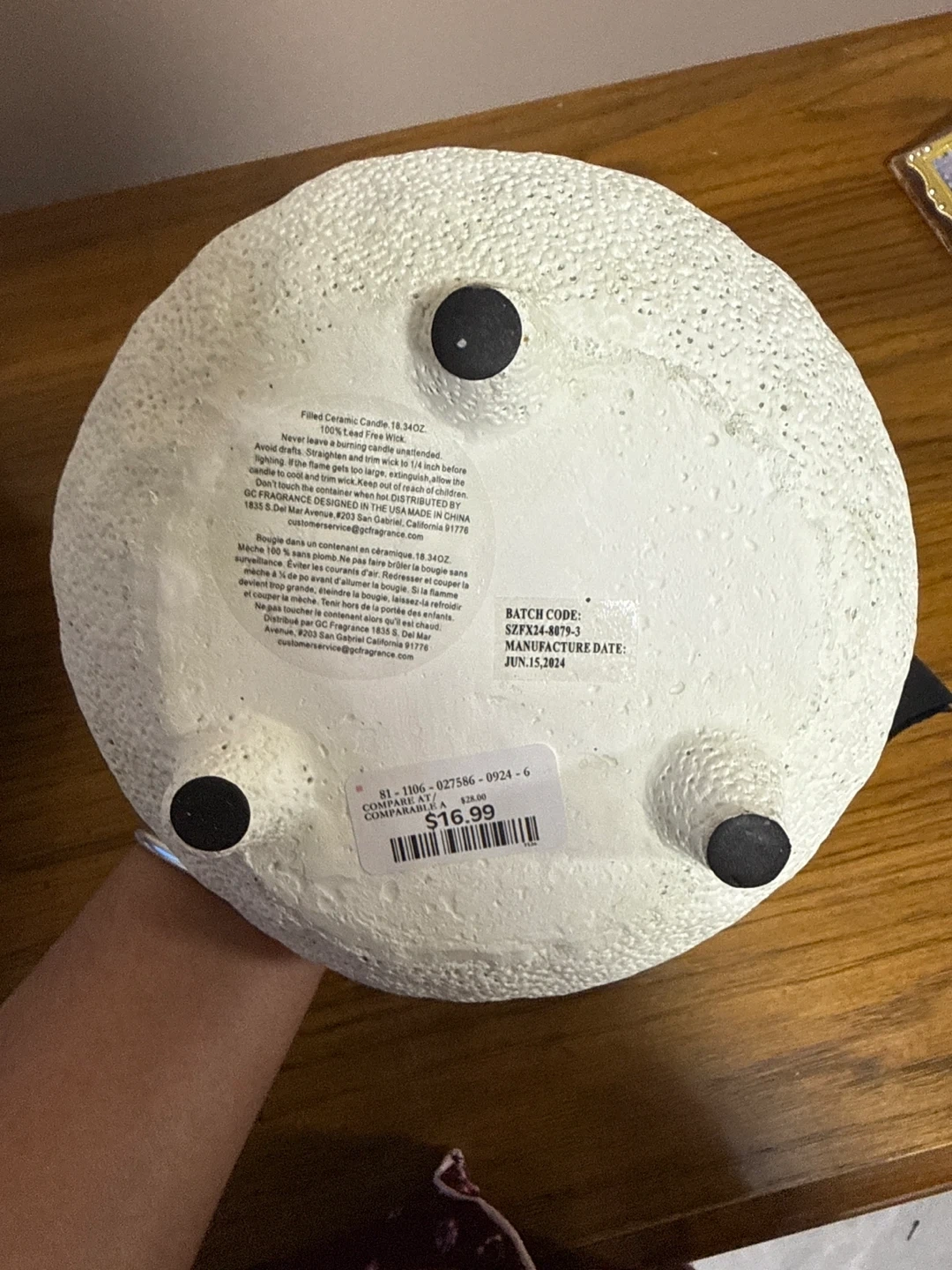This is a filled ceramic candle, weighing 16.34OZ. It is 100% Lead Free Wick. The manufacture date is 2024 June 15. Originally bought for $16.99 Lemon vanilla flavour