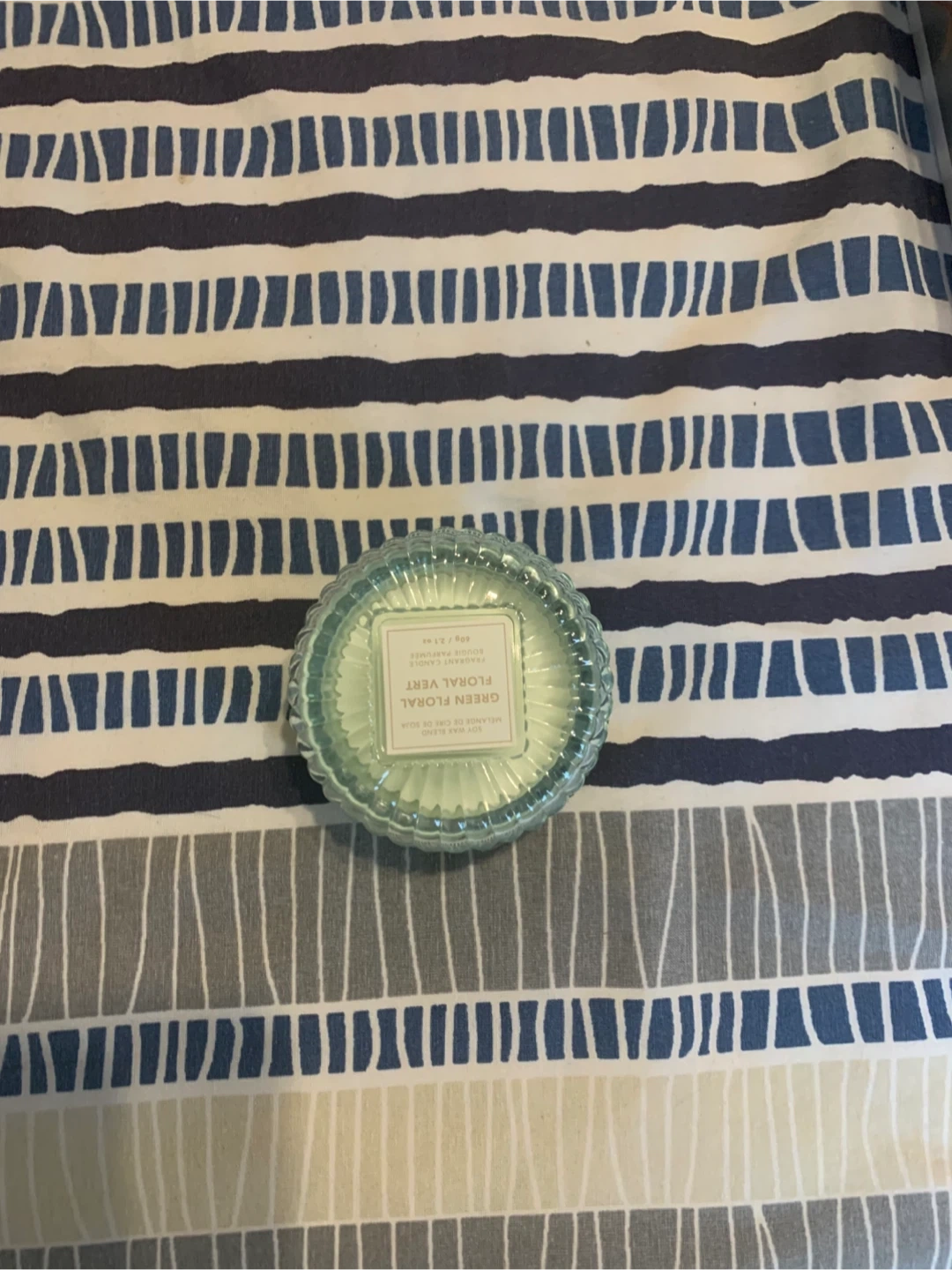 I'm selling a Capri Blue candle in the Green Floral scent. It's a lovely, fresh fragrance that would be perfect for any room in your home. The candle is in great condition!