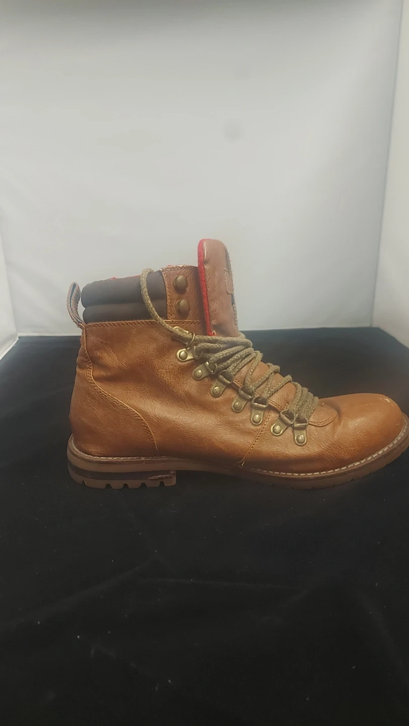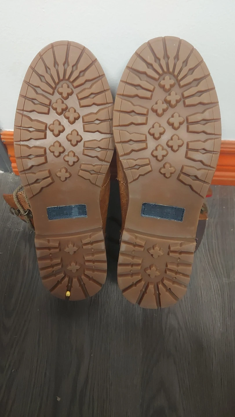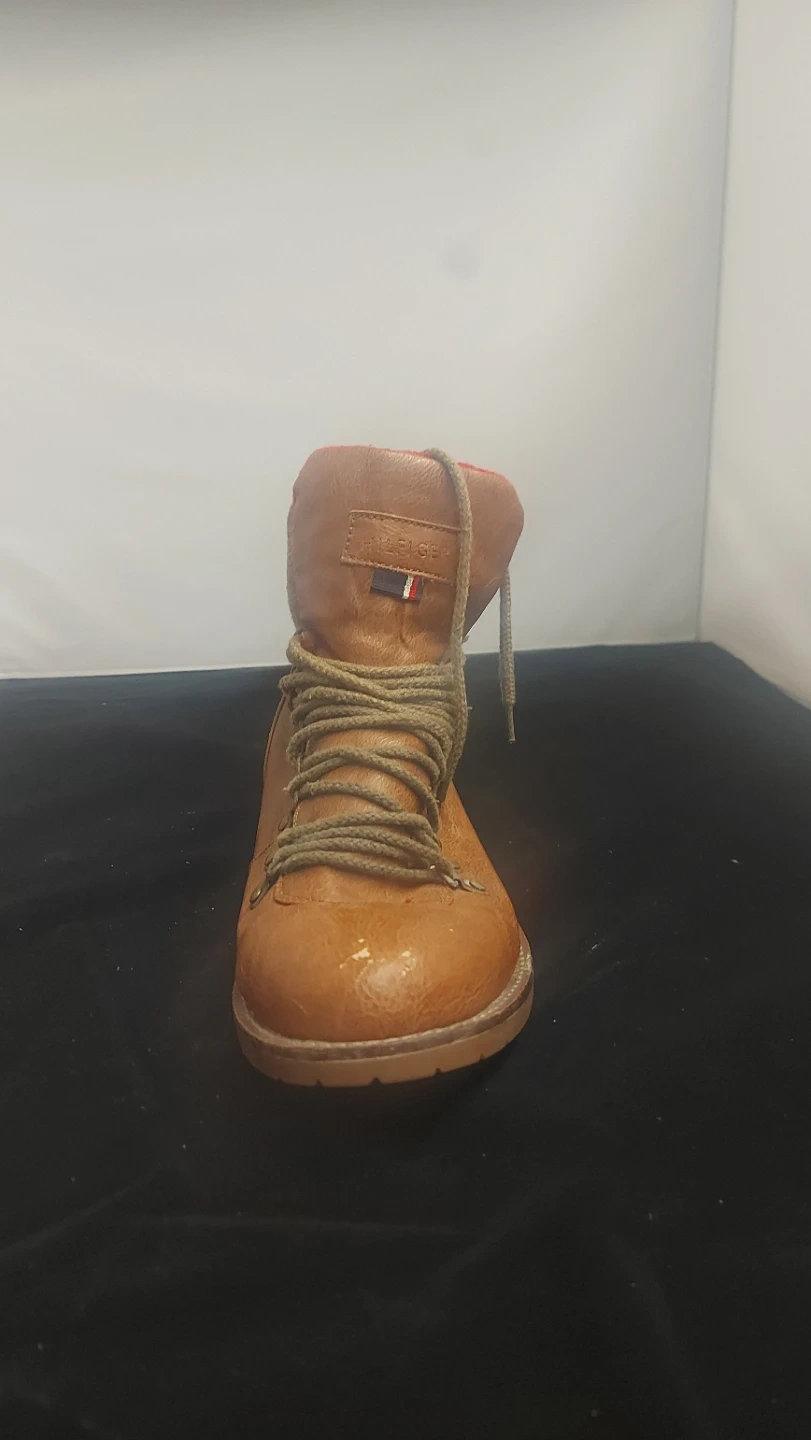 These Tommy Hilfiger brown leather boots size 9. Pre owned 124 & willing to negotiate. A stylish addition to any wardrobe! They are made of brown leather and feature a lace-up design. They show some signs of wear, but are still in good condition and ready for new adventures