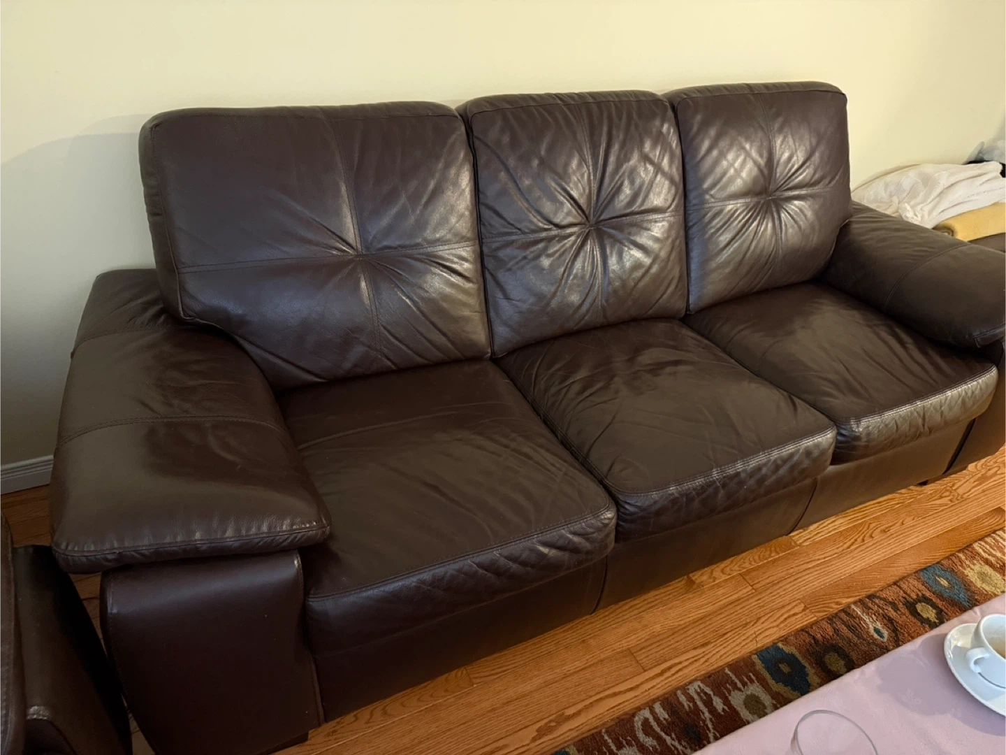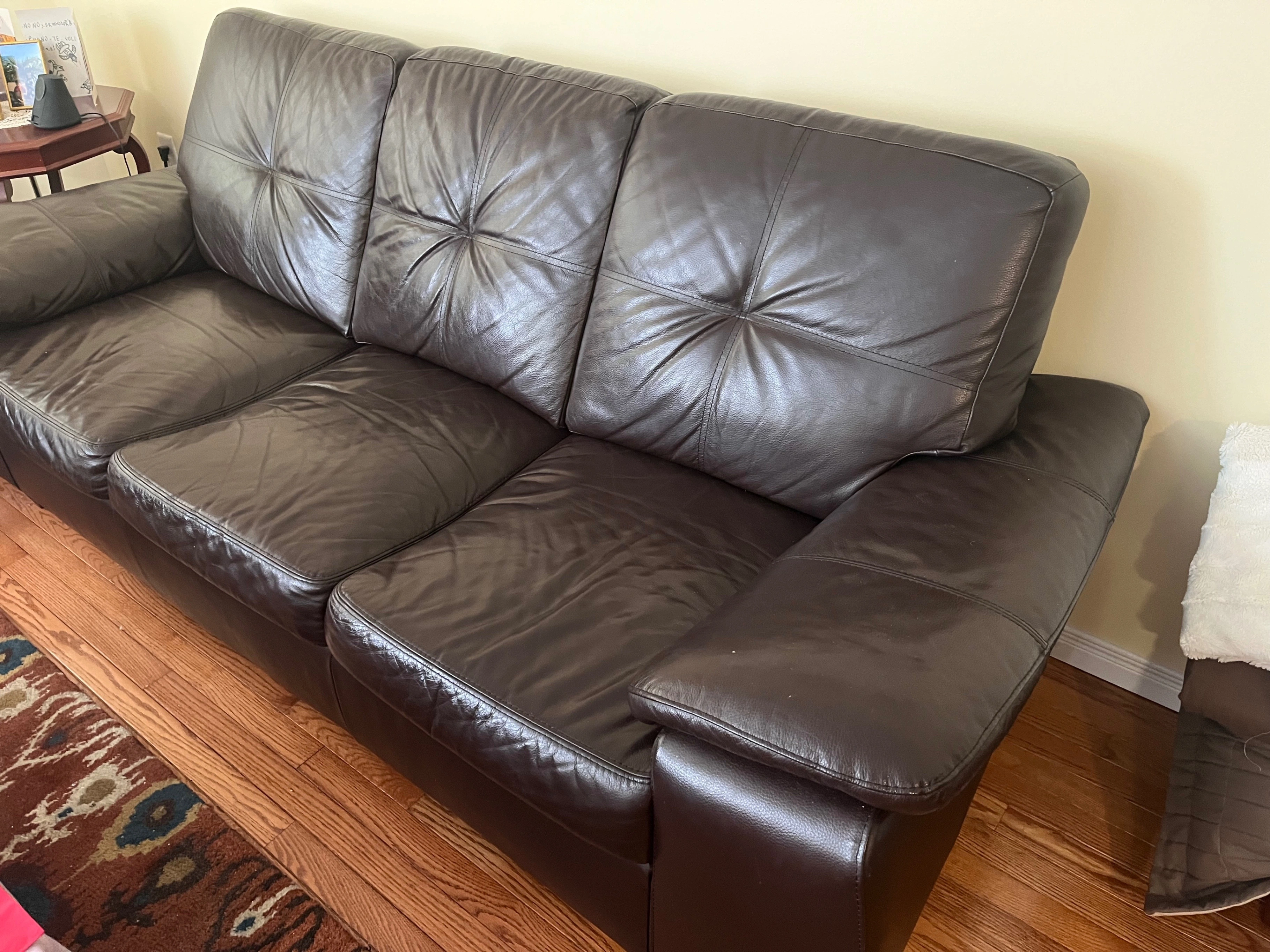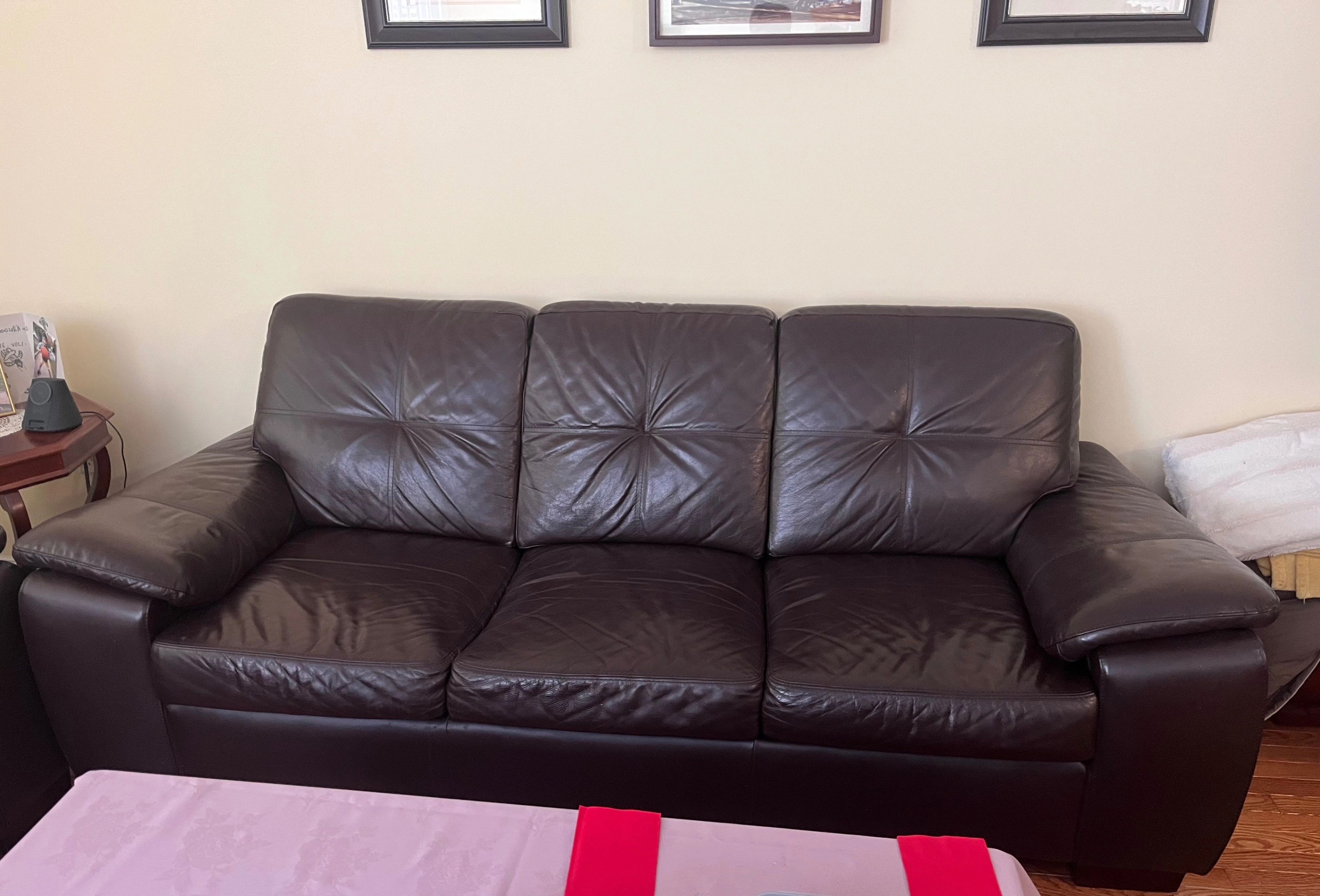 Dark brown three-seater leather sofas In great condition, no scratches, no damage