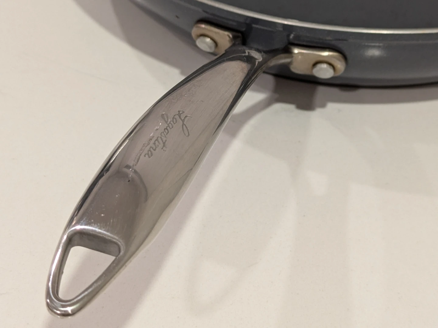 Selling a Lagostina frying pan. It's in good used condition and ready for your next culinary adventure! It has a nonstick surface for easy cooking and cleaning, and the handle is riveted for durability