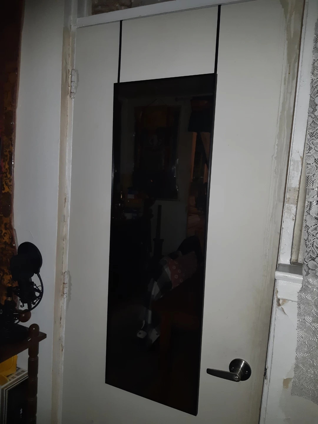 Selling a full-length over-the-door mirror! It's a great way to save space and get a full view. Perfect for bedrooms, closets, or hallways. It's in good condition and ready to hang
