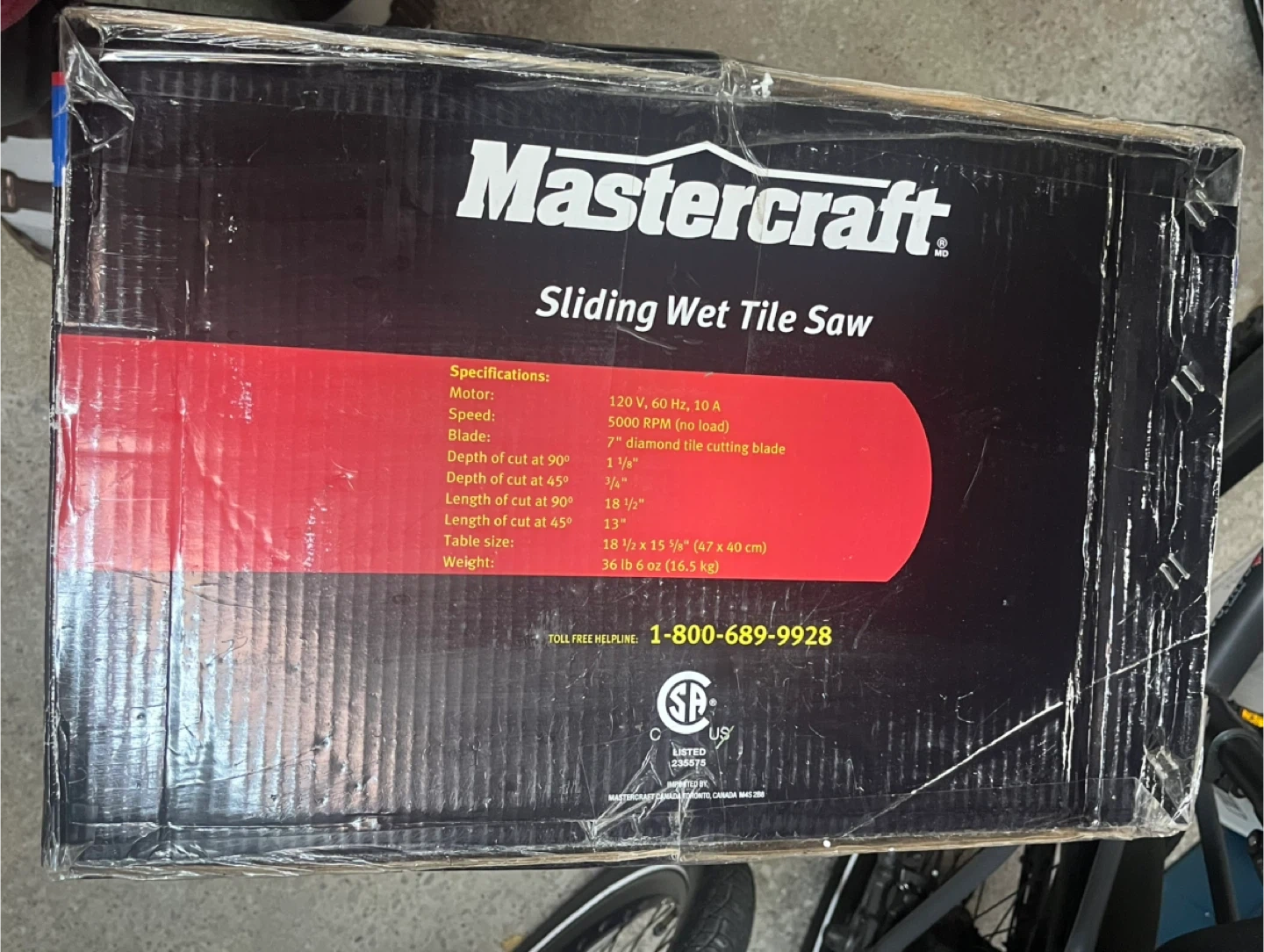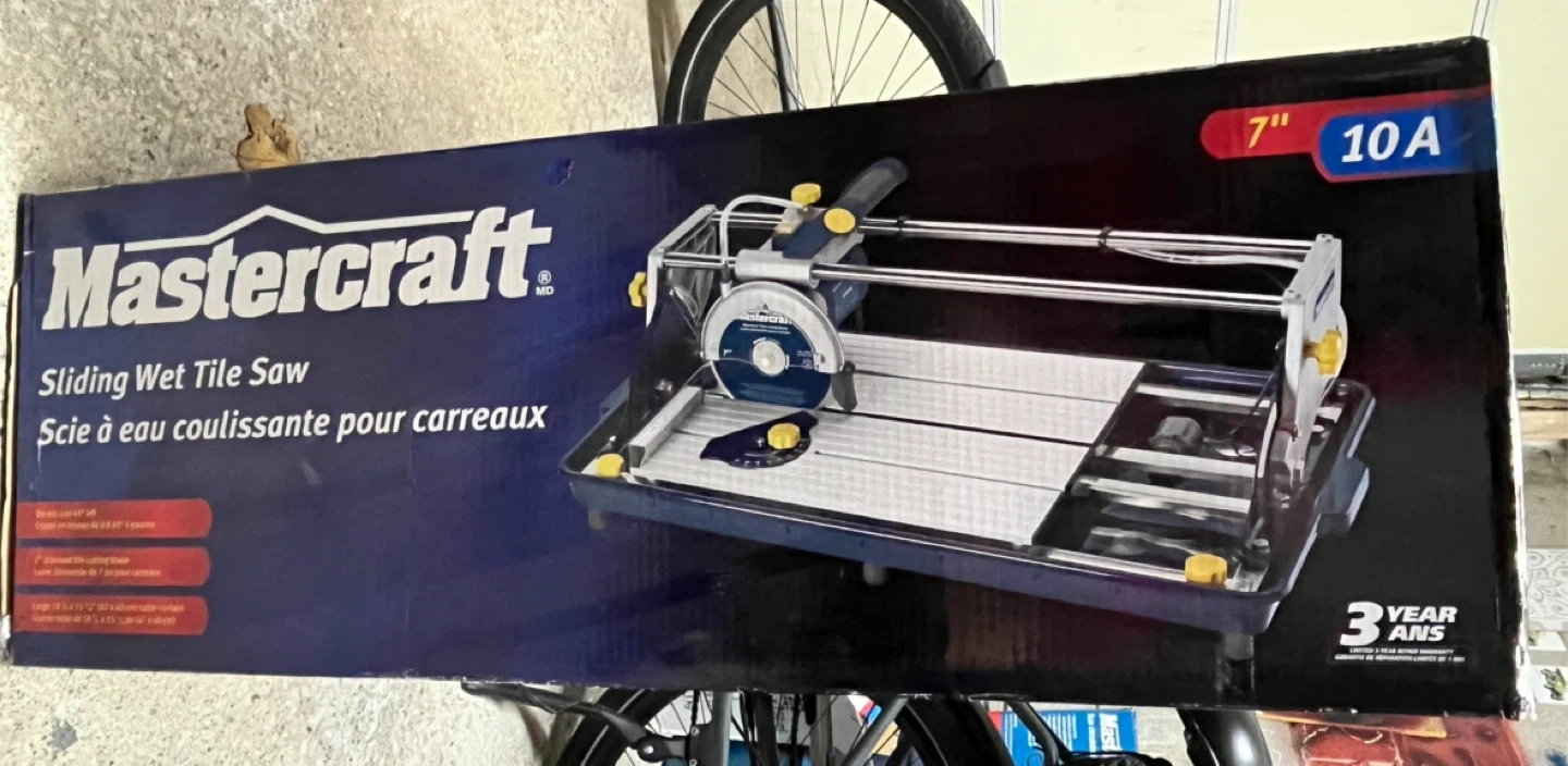 Selling a Mastercraft Sliding Wet Tile Saw with a 7" diamond tile cutting blade. It is Brand New In Box and ready for your next tiling project! Specifications include: