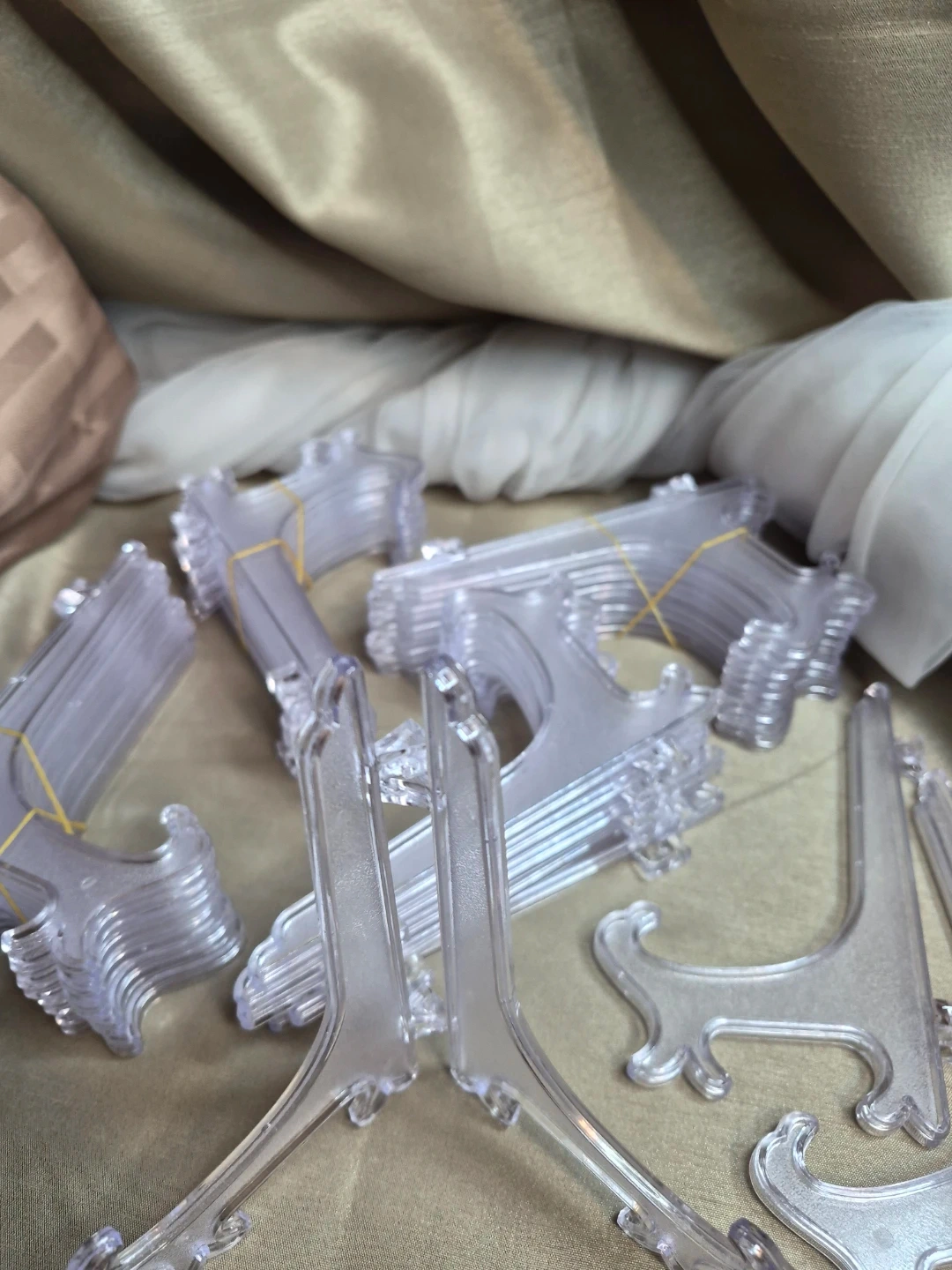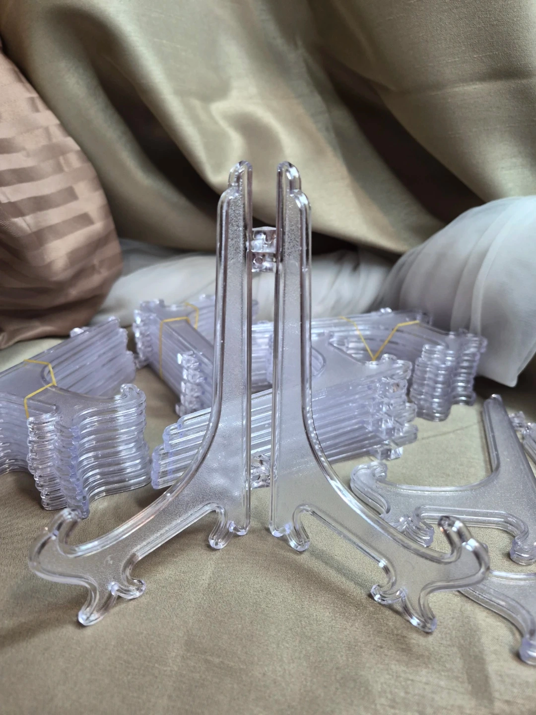 Lot of 17 Brand New Leftovers 6" Clear Plastic Plate Display etc. Holders selling all together Please See all pictures