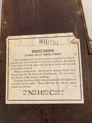 All original antique American classic "Whitney" banjo clock made by the venerable clockmaker, The New Haven Clock Company.