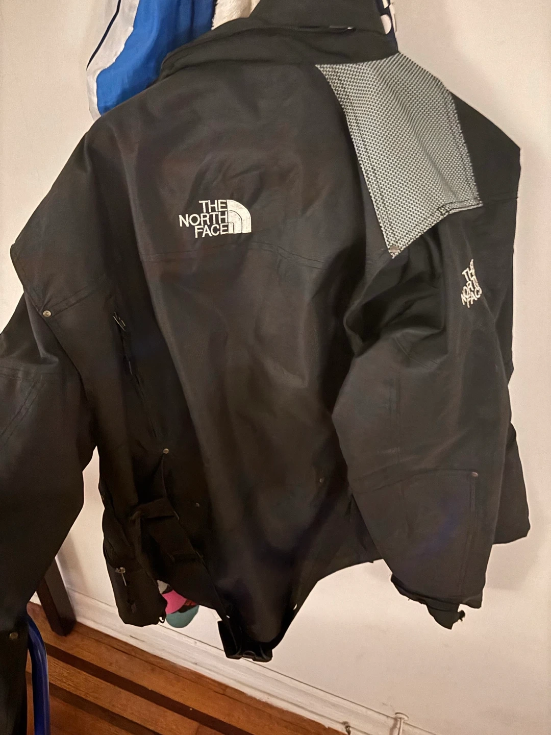 Selling a The North Face Steep Tech jacket! It's black with a gray hood accent. It has multiple pockets and the Steep Tech logo on the front. It’s a size large and the zipper is needs to be replaced or fixed. I’m looking to sell or trade for a north face puffer I don’t live in Lincoln square. I work there.