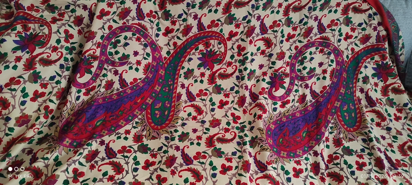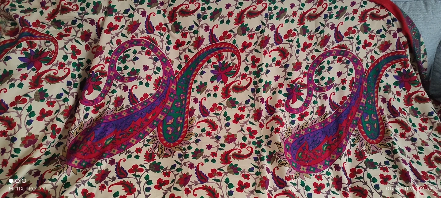Shawl - Selling a piece of fabric with a vibrant paisley pattern! The fabric features a mix of red, purple, green, and cream colours, making it a standout piece.