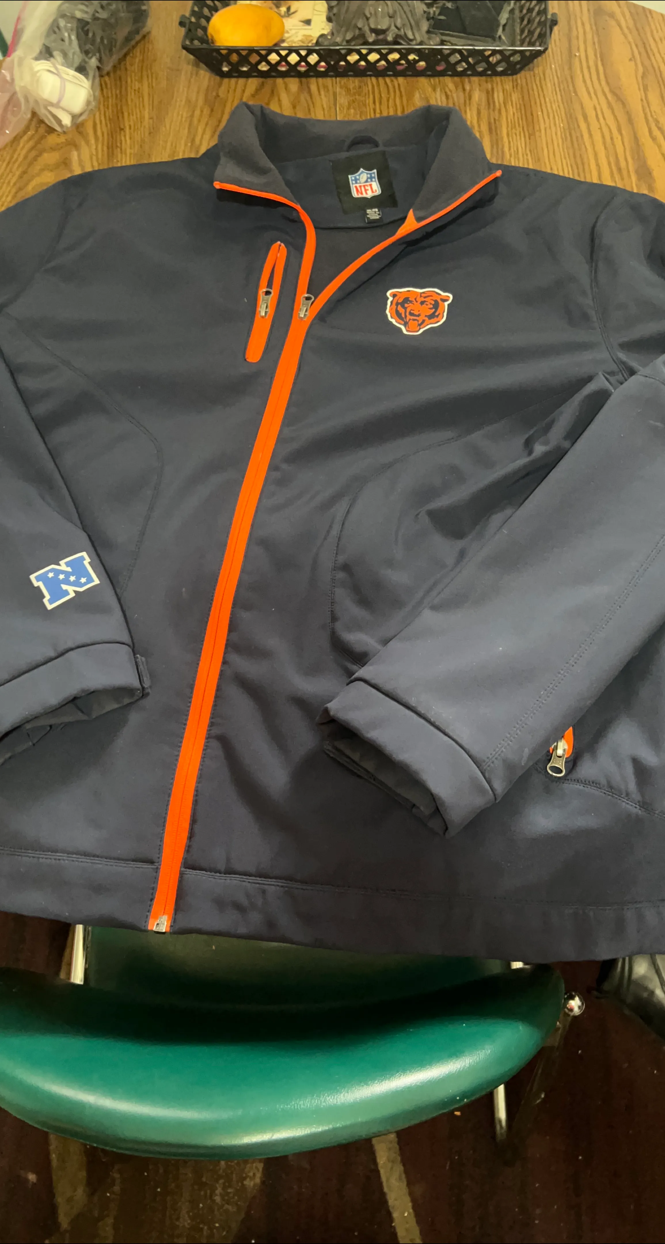 NFL Chicago Bears jacket in great condition! This jacket is perfect for showing off your team spirit. It features the Bears logo and team colors. Ready to go to a new home!