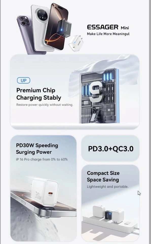 30W Type C Charger PD QC3.0 Fast Charger