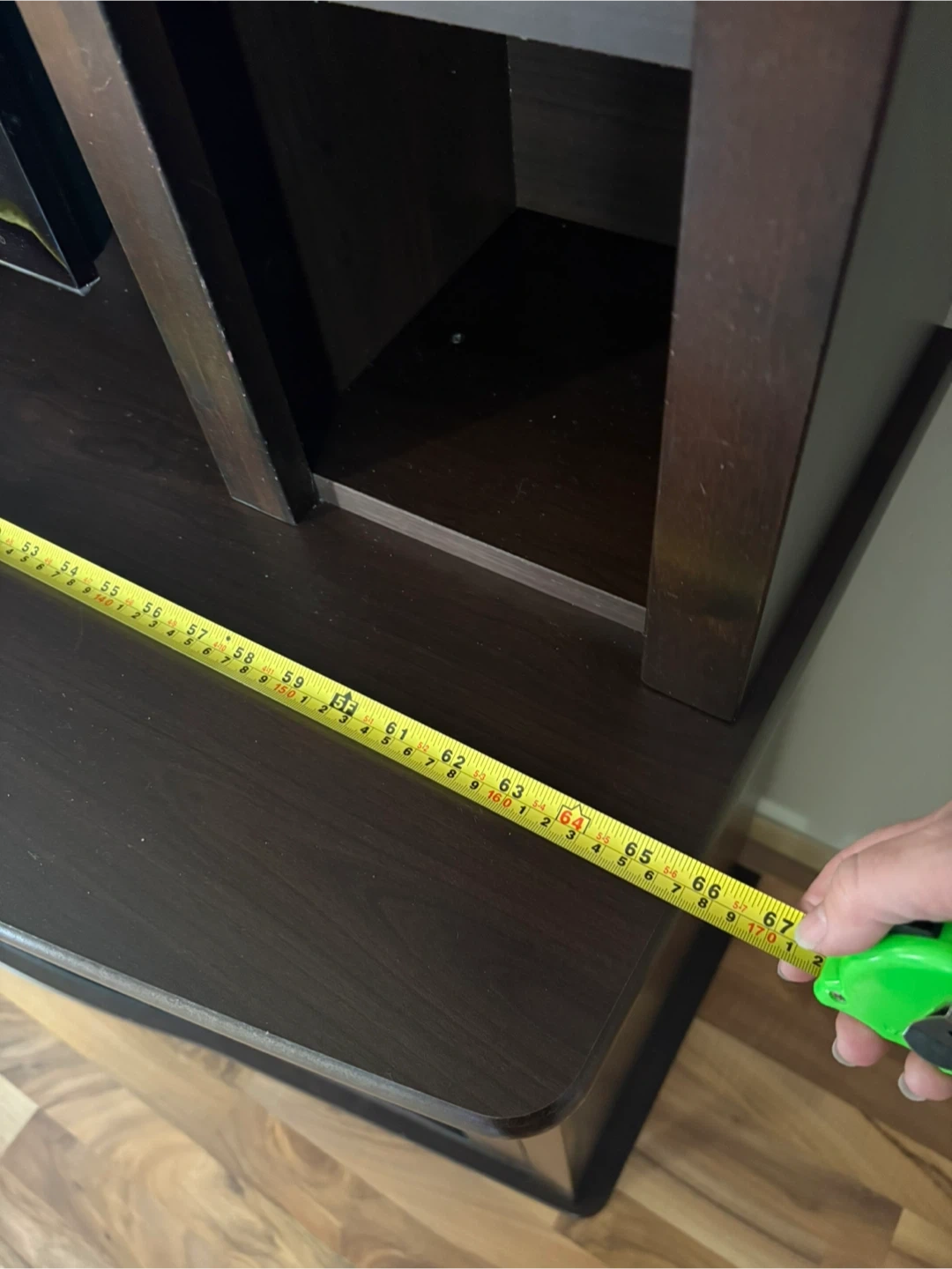 Selling a dark brown entertainment unit with a built-in fireplace. It features shelving and glass-door cabinets, providing ample storage space. The unit measures approximately 67 inches in length and 21 inches in depth. Great for creating a cozy atmosphere in your living room. Comes apart for moving. Cash only.