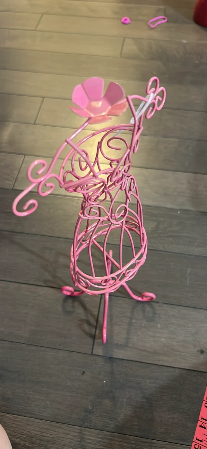 This cute pink metal dress form jewelry holder is perfect for displaying your favourite necklaces and earrings! It's about 18 inches tall and adds a touch of whimsy to any space