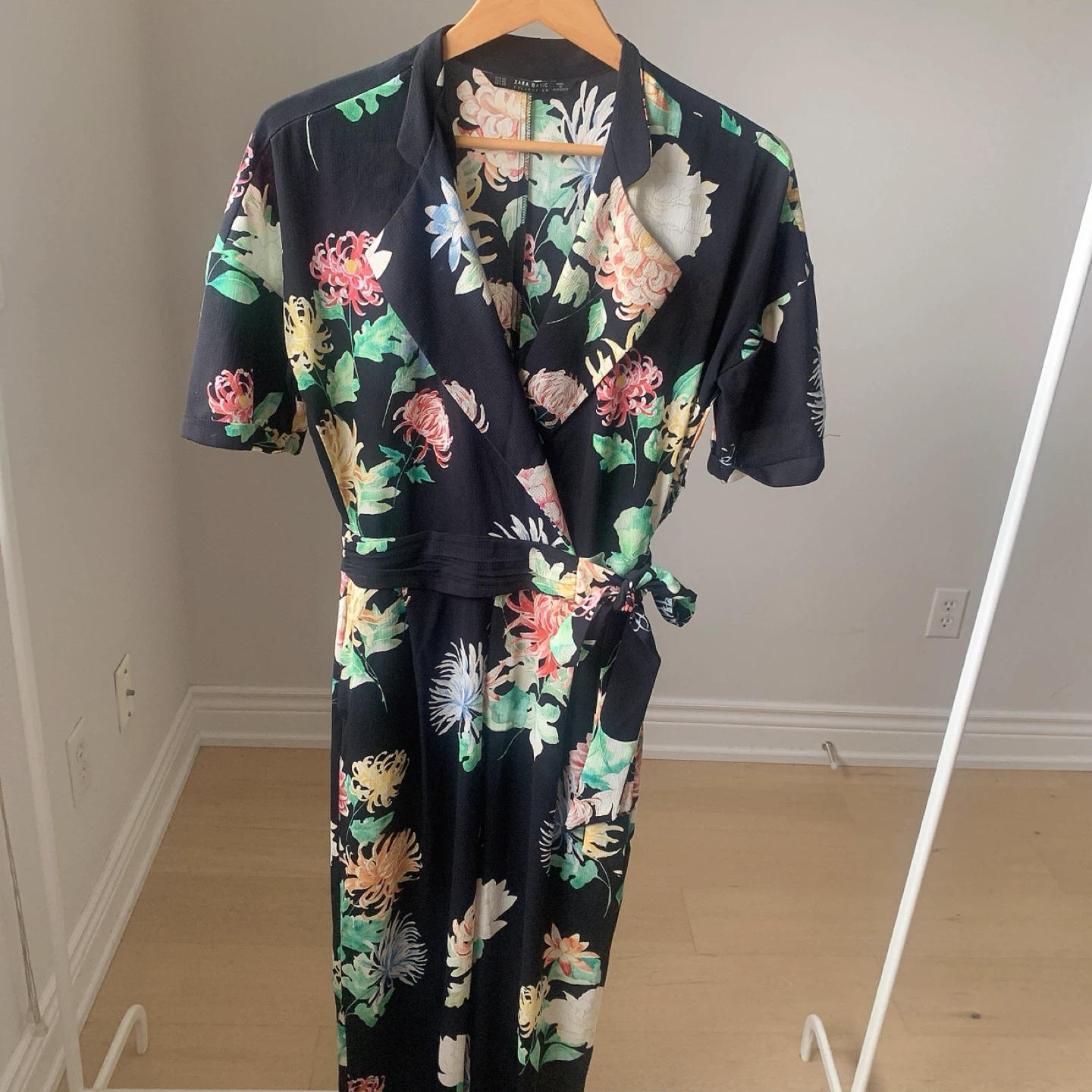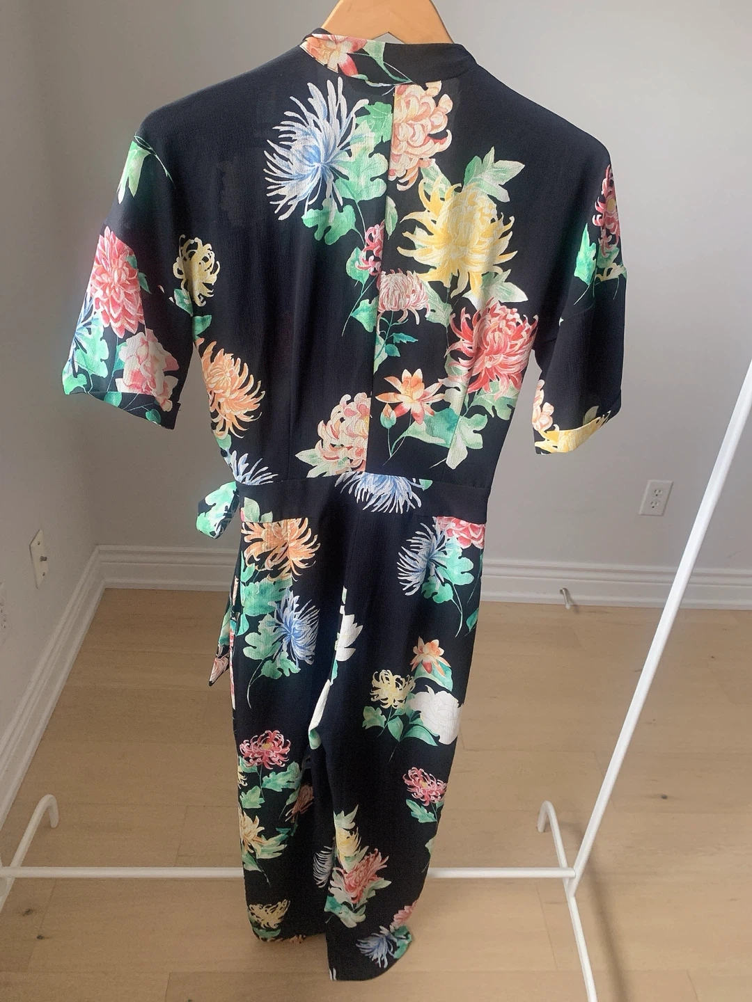 ZARA black floral jumpsuit in size XS with a vivid and colorful floral pattern.