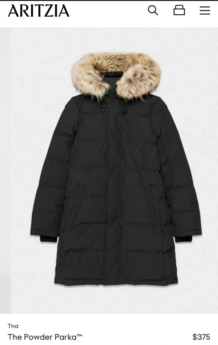 Selling a Tna The Powder Parka from Aritzia in black! This cozy parka is perfect for the Canadian winter. It features a faux fur-trimmed hood and a warm, insulated design. Originally bought for $375