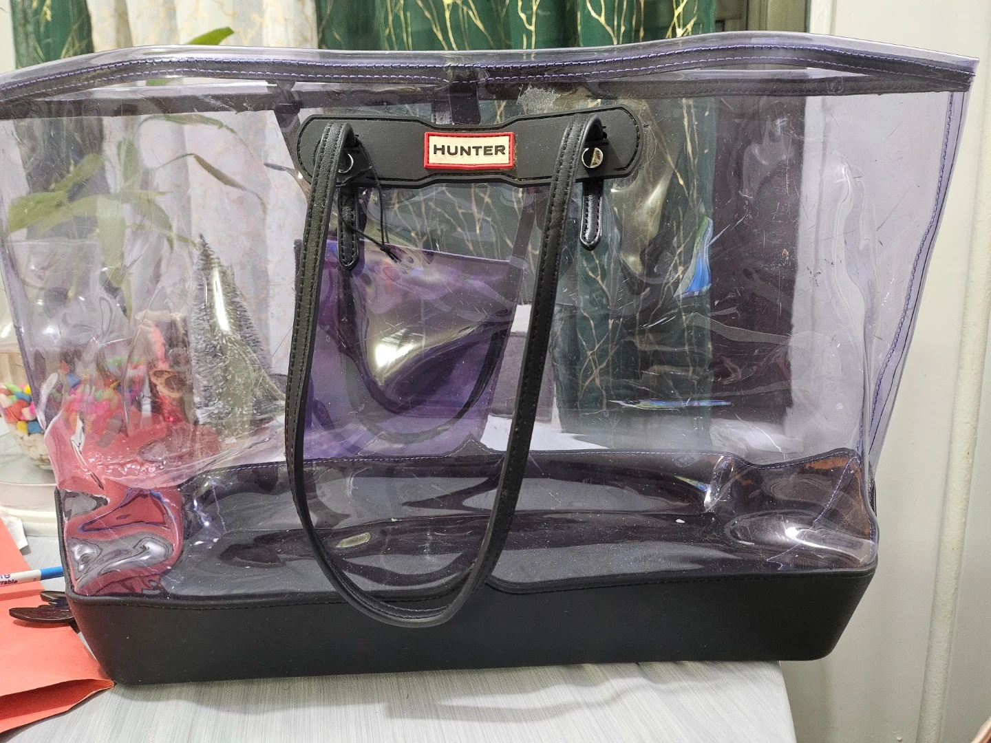 Selling a Hunter clear tote bag! It's in great condition and perfect for carrying your essentials. The clear design is stylish and practical