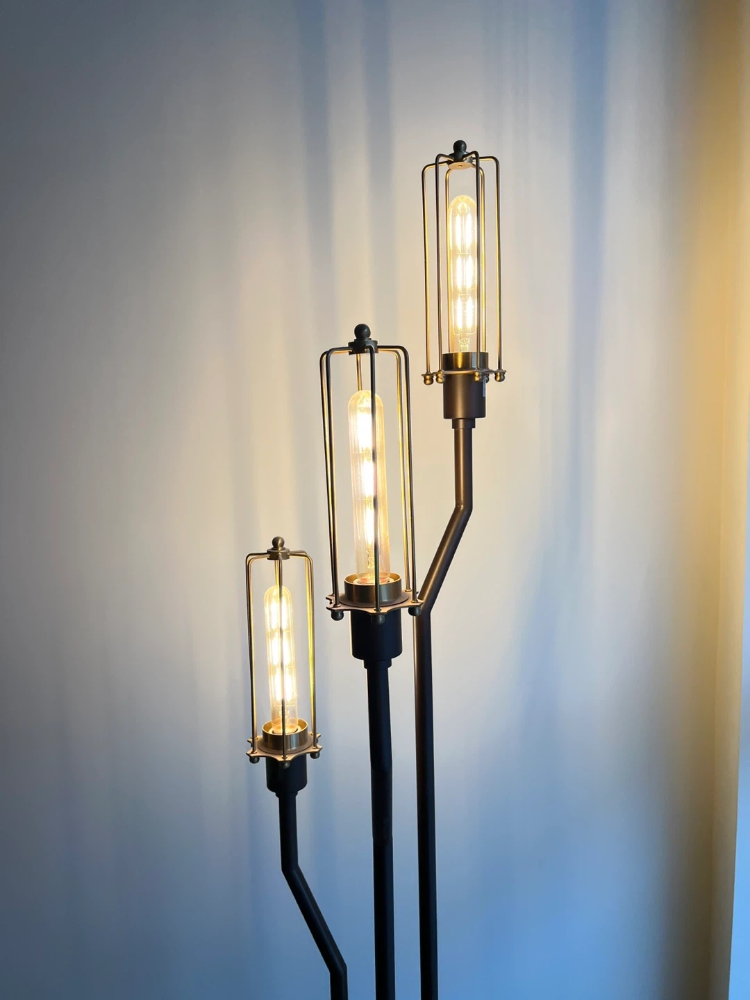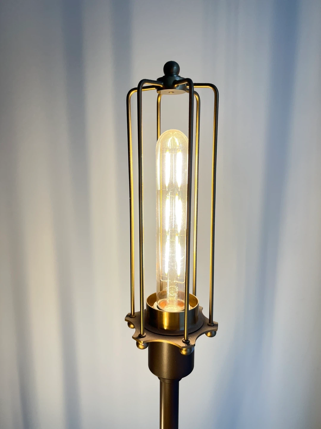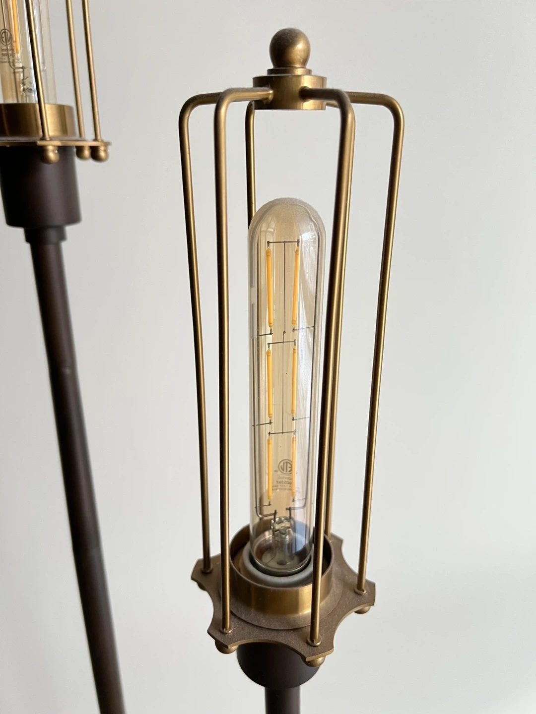 Brass cage exposed edison style light bulbs 120V 60HZ.