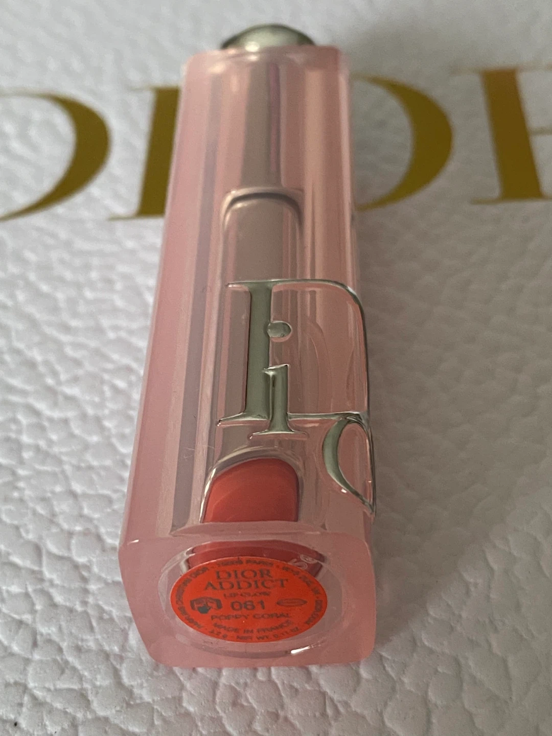 Selling a Dior Addict Lip Glow in the shade 061 Poppy Coral! It's a beautiful colour that gives your lips a subtle, natural-looking tint and keeps them moisturized. No box.