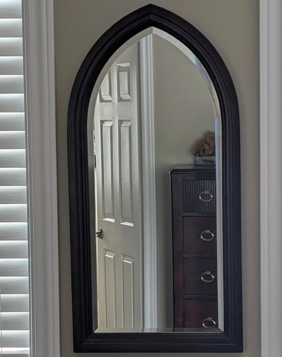 Selling an elegant arched, bevelled Bombay mirror. Perfect condition. Looks great in any room of the house! 16" x 31.5" (from peak of arch).