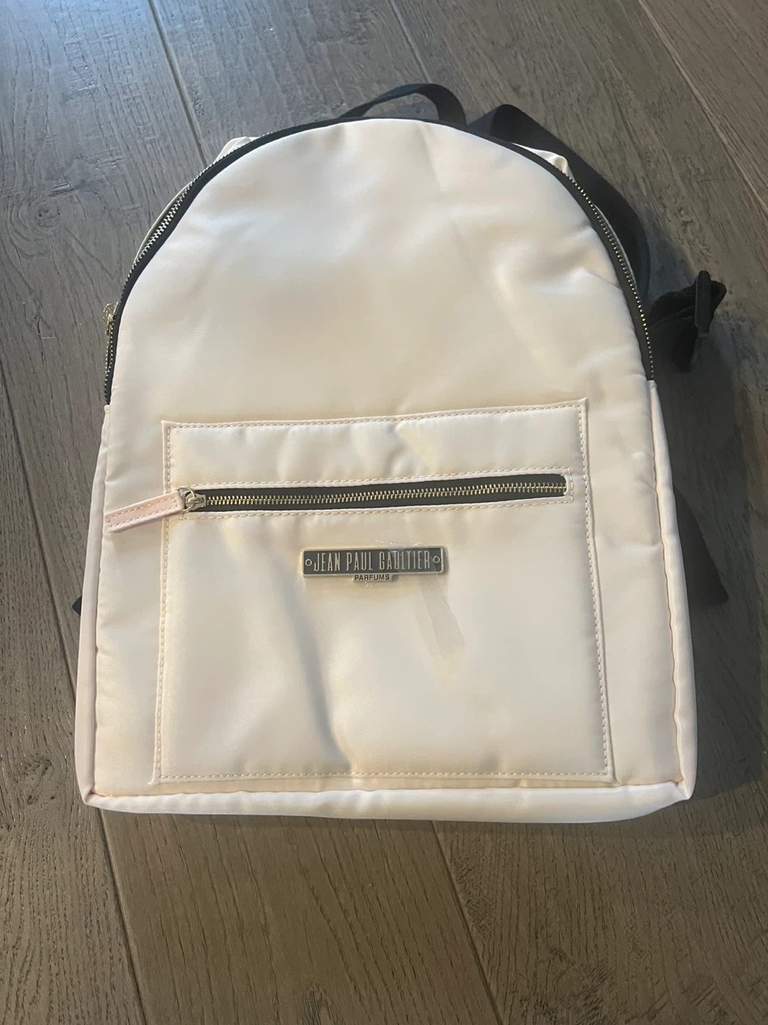 Selling a Jean Paul Gaultier backpack. It's a stylish and functional accessory! The backpack features a sleek design with black straps and a front pocket with a zipper. Perfect for carrying your essentials in style