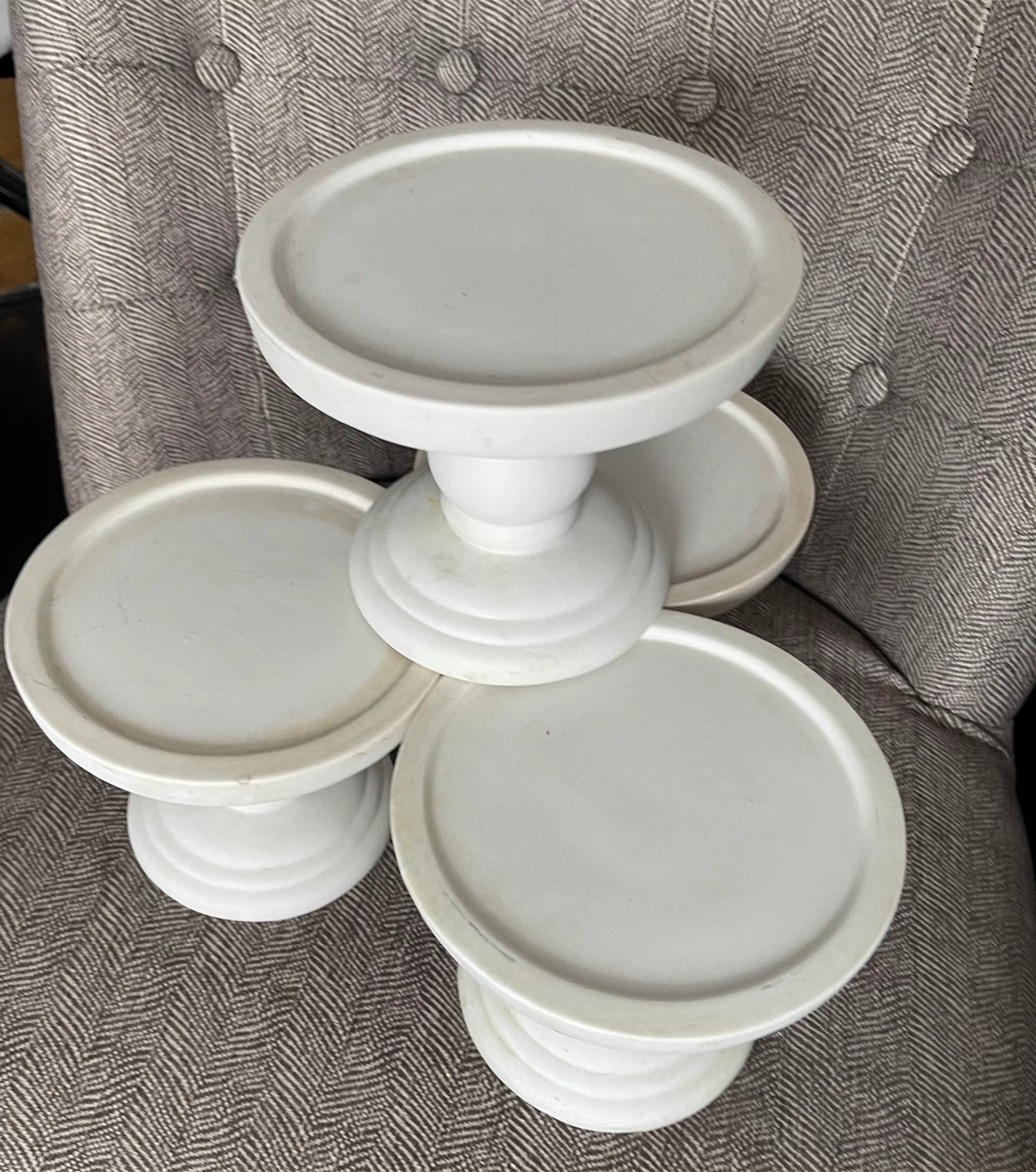 I'm selling these 4 lovely white pedestal stands! They're perfect for displaying as risers plants, or anything else you'd like to showcase. They add a touch of elegance to any setting. They are in great condition and ready for a new home!