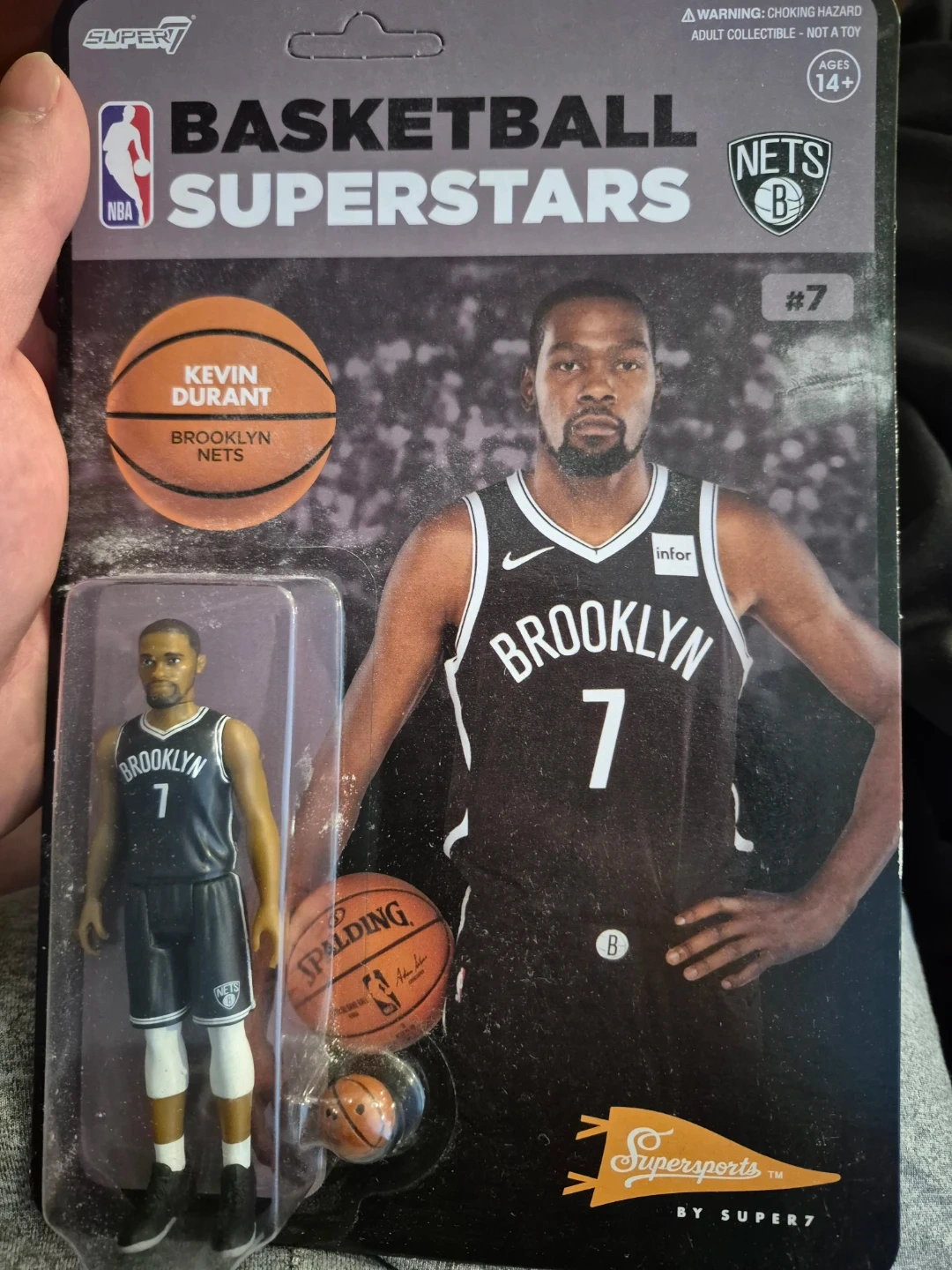 Selling a Kevin Durant Brooklyn Nets Basketball Superstar action figure by Super7. It's an adult collectible and comes in its original packaging