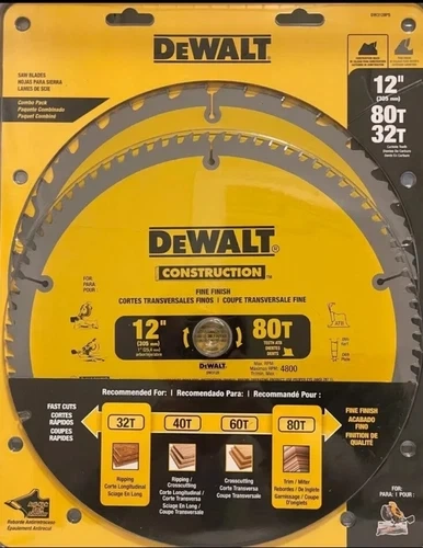 DeWALT 12-inch Construction Blades 80T & 32T - DW3128P5 NEW