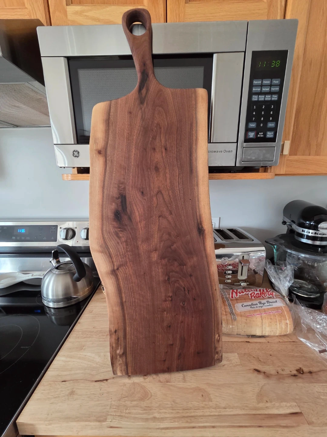 Live Edge Handled Wooden Charcuterie Board.... Dark Walnut