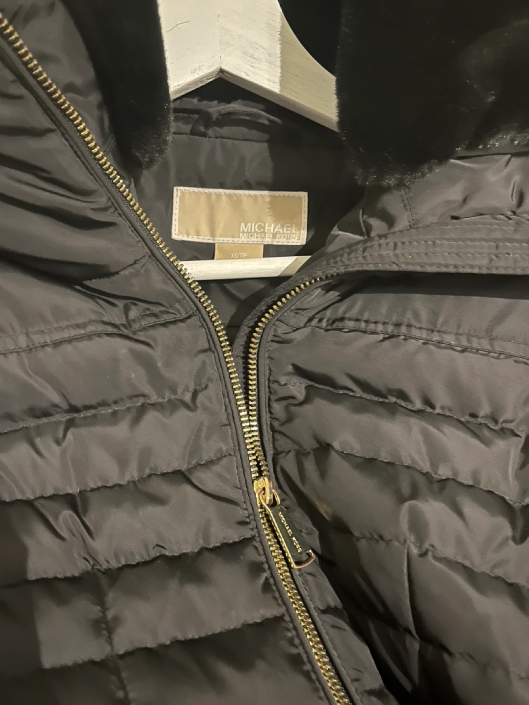Selling a Michael Kors black puffer coat in size XS. It features a belted waist and a faux fur trimmed hood. Great for staying warm and stylish during the colder months! Detachable fur and zipper head