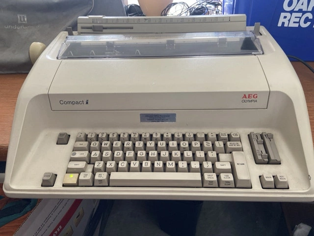 This is an AEG Olympia Compact 1 Typewriter, a reliable machine for all your typing needs. Please note that this is a used item, but it's in good working condition, ready to bring a touch of vintage charm to your documents. Here are some of its features: