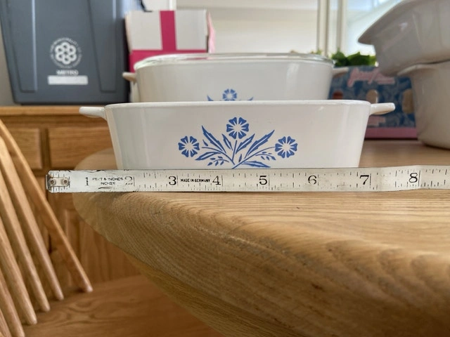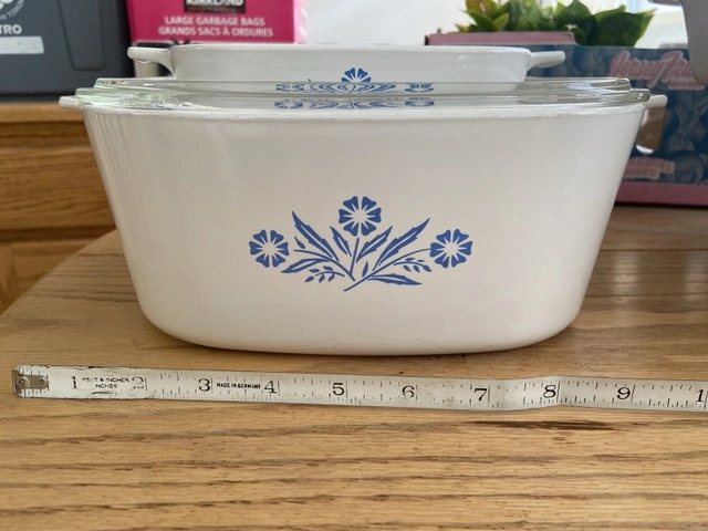 This vintage Corningware set includes a 3-litre casserole dish with a glass lid, a 1.5-litre casserole dish with a glass lid, and a smaller rectangular baking dish, all adorned with the classic blue cornflower design. This set is in used, but good condition, with some signs of wear typical of its age. A fantastic addition for collectors or anyone who appreciates timeless kitchenware! These dishes nest for easier storage. Additional Details: * 3-litre Casserole Dish with Lid * 1.5-litre Casserole Dish with Lid * Rectangular Baking Dish. Let me know if you're interested!