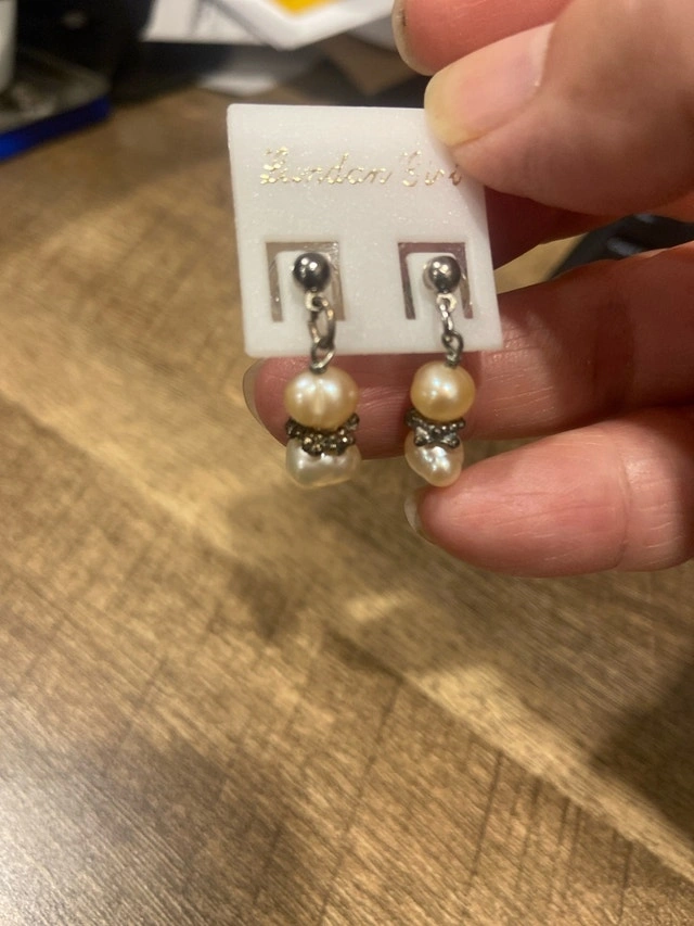 Elevate your style with this exquisite used pearl jewellery set, featuring lustrous pearl earrings and two elegant pearl rings, perfect for adding a touch of sophistication to any ensemble. The earrings are dangle earrings. These items are used and in good condition.