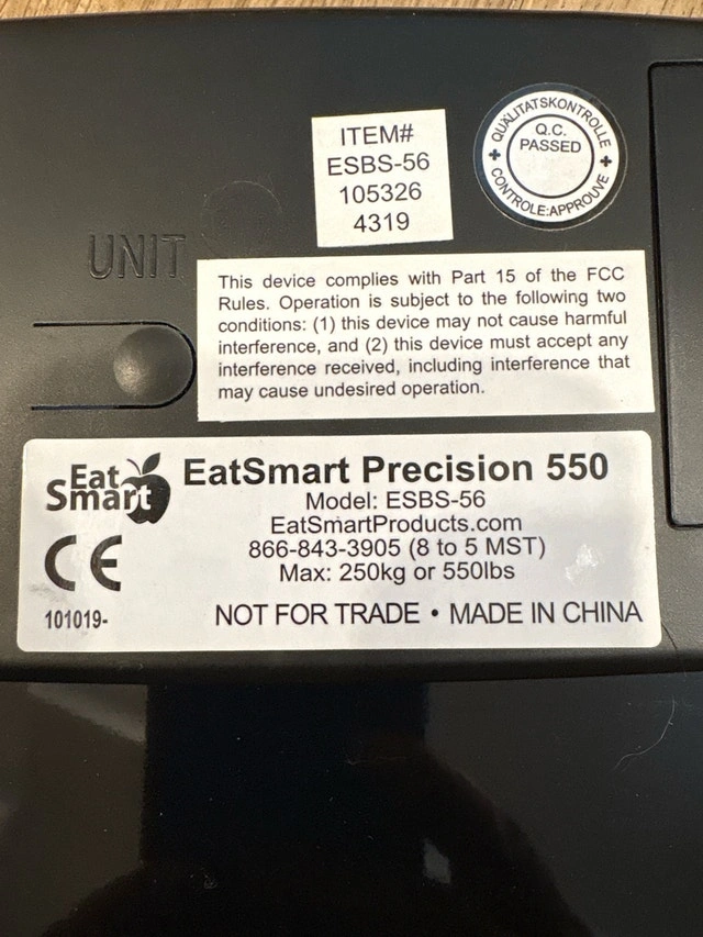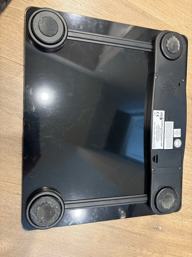 This EatSmart Precision 550 digital bathroom scale provides accurate weight measurements up to 550 pounds. This scale is used, but it's in good working condition, ready to help you keep track of your fitness goals! EatSmart bathroom scales typically retail between $30-$50 new, so I'm pricing this competitively.