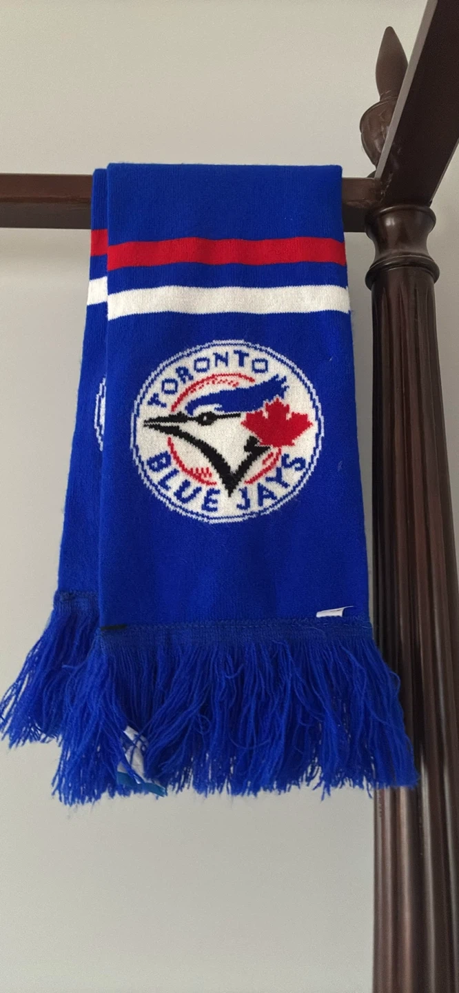 Show your team spirit with this Toronto Blue Jays scarf! It's in great condition and ready to keep you warm during those chilly games or just to show off your love for the Jays