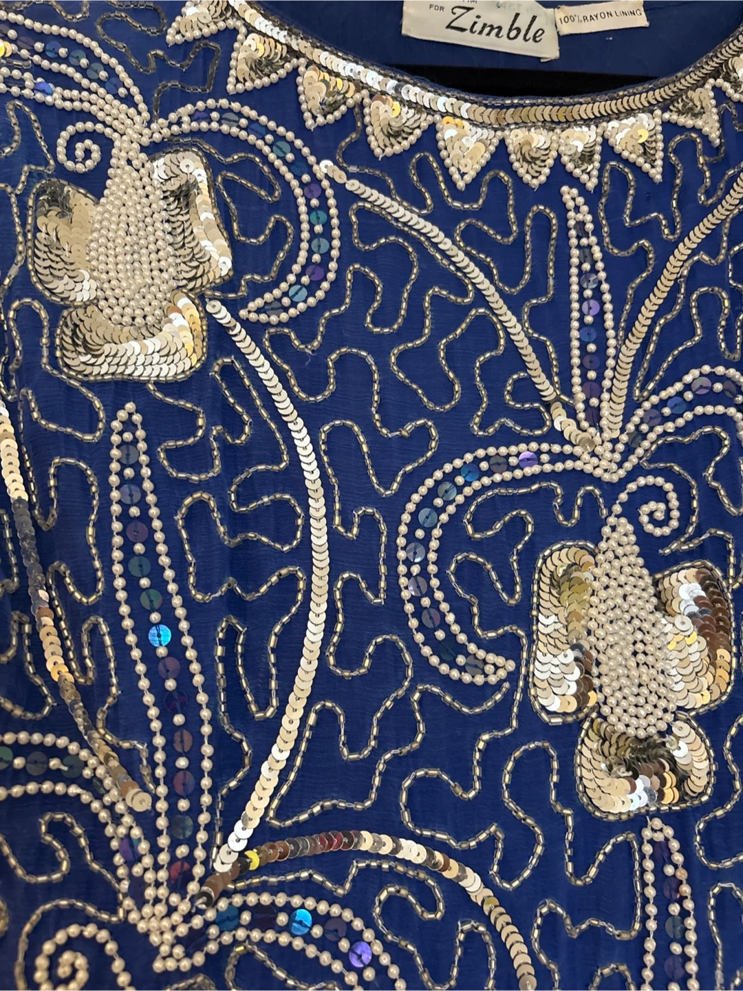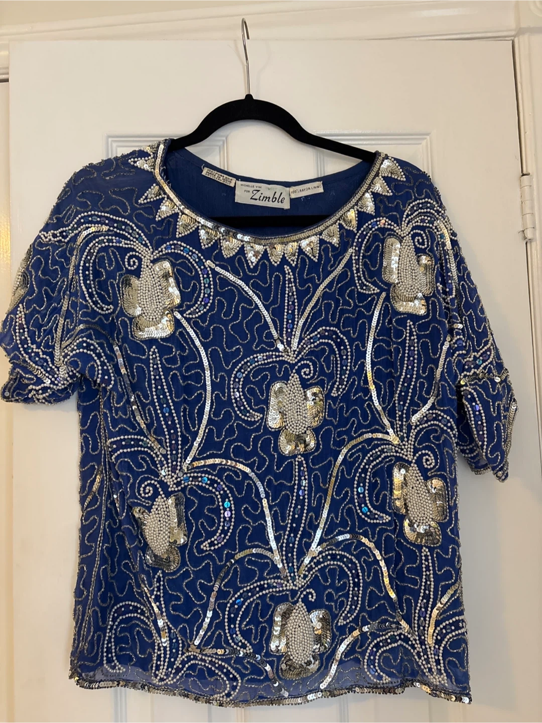 This beautiful Zimble top is made of 100% pure silk with a 100% rayon lining! It features intricate beading and sequins. It's a size medium and in great condition!