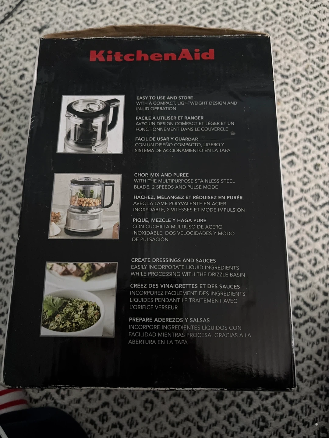 Selling a Brand new KitchenAid Food Chopper in Aqua Sky! It's a 3.5 cup (830 ml) chopper that's great for quickly chopping, mixing, and pureeing. It's easy to use and store, with a compact, lightweight design. Also features a convenient drizzle basin and easy cord storage! Includes the food chopper, a BPA-free bowl and lid, and a stainless steel blade