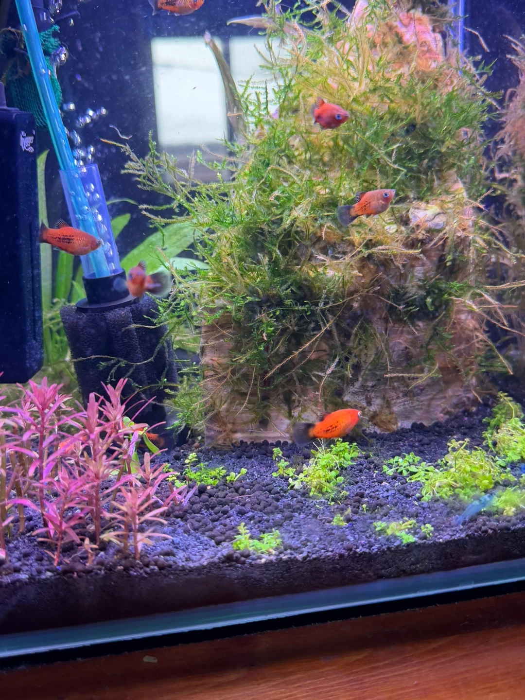 $10 for all 5 red wag platy mix fry! 2 are “check mark” because the mother was stressed at birth but they are full of personality, eat & swim well!